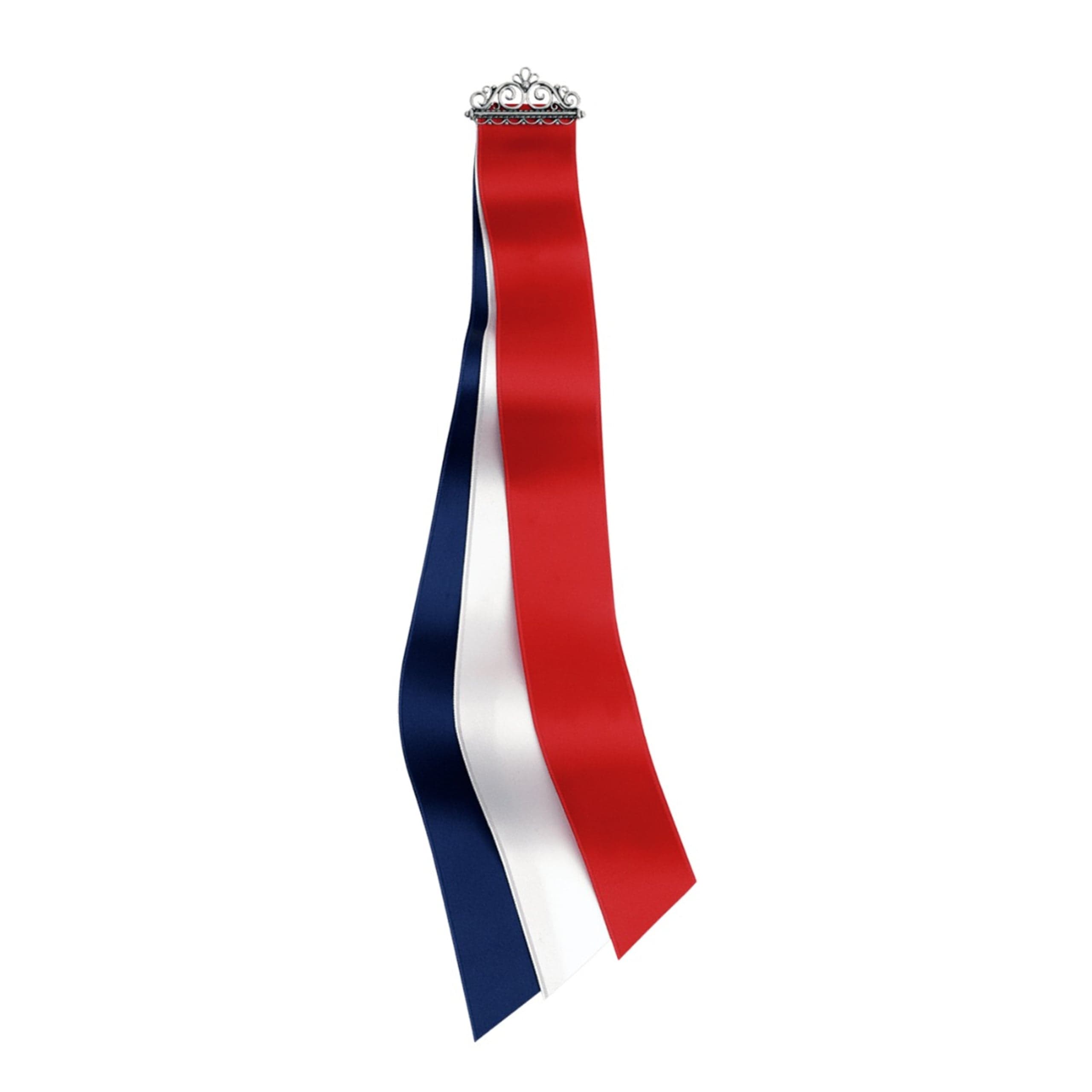 17. mai sløyfe med filigran i oksidert sølv. Sløyfebåndet er 28 cm langt i rødt, hvitt og blått. Tidløs og populær som kan brukes år etter år til både liten og stor.