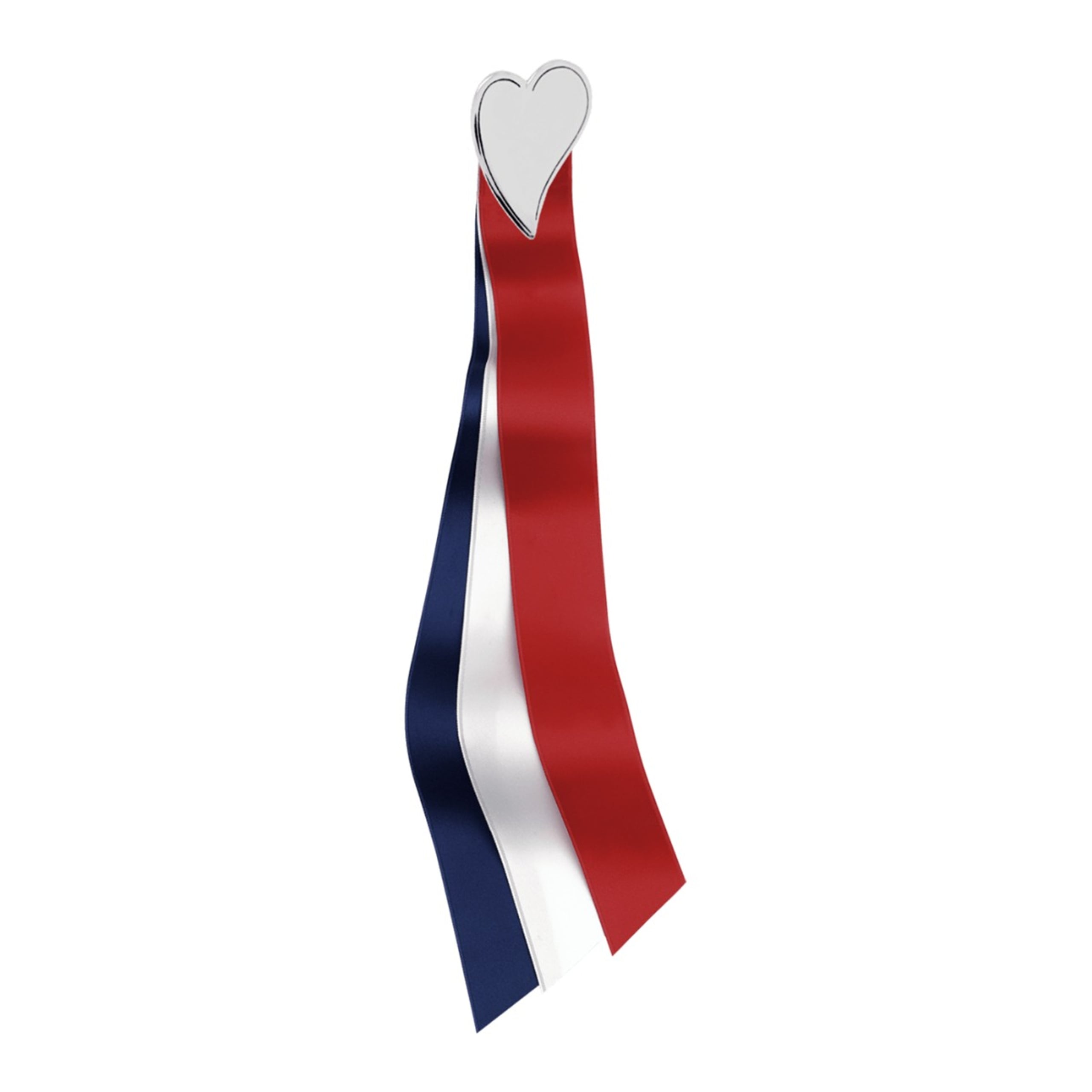 Nydelig hjerteformet 17.mai sløyfe i oksidert sølv med sløyfebånd i rødt, hvitt og blått. Dette er en tidløs sløyfe som kan brukes år etter år og passer til både liten og stor.