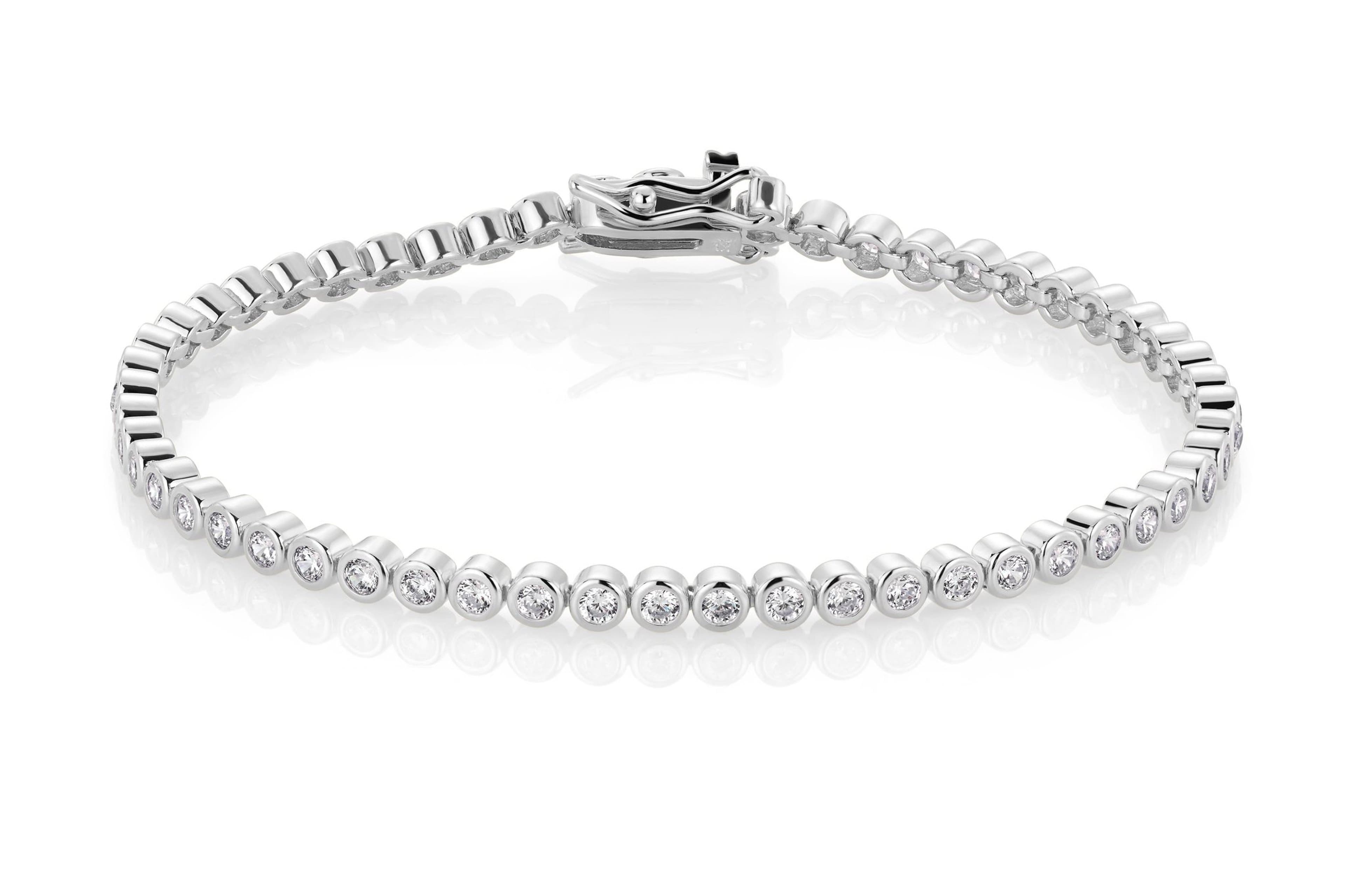 Elegant tennisarmbånd fra House of Piene-kolleksjonen. En særpreget smykkekolleksjon som henter inspirasjon fra skjærgårder og glitrende hav. Dette lekre armbåndet er prydet med glitrende hvite stener som skinner gjennom den blanke overflaten laget i sølv. Armbåndet har en kasselås som gjør det enkelt å ta på og av armbåndet selv. Dette er et armbånd som passer til alle festanledninger, og er like fint å bruke til hverdagen hvis man ønsker å pynte seg litt ekstra.