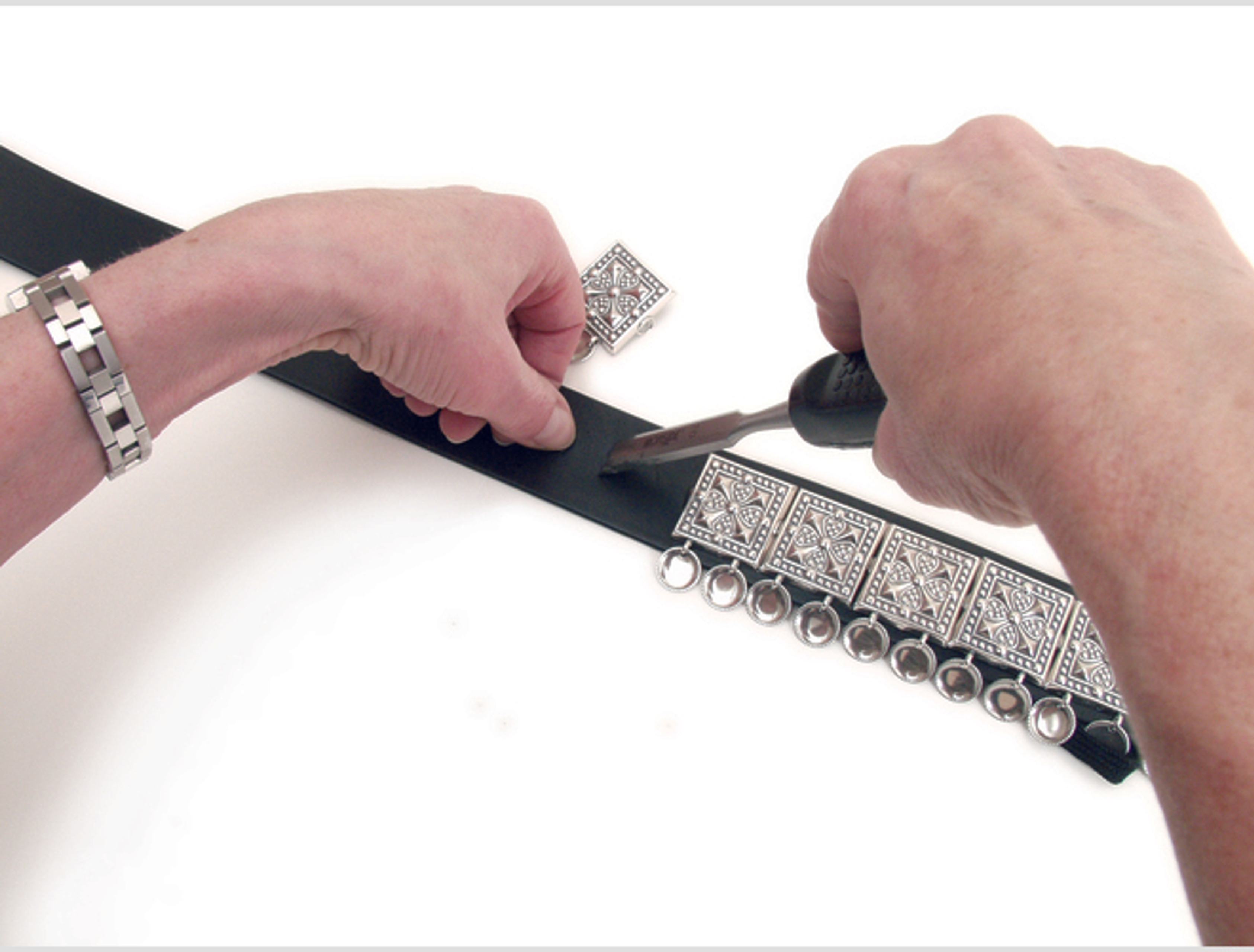I tillegg trenger du beltestøler og beltespenne, samt skinnlist. Oppgi livvidde eller antall støler du ønsker det laget hull til.