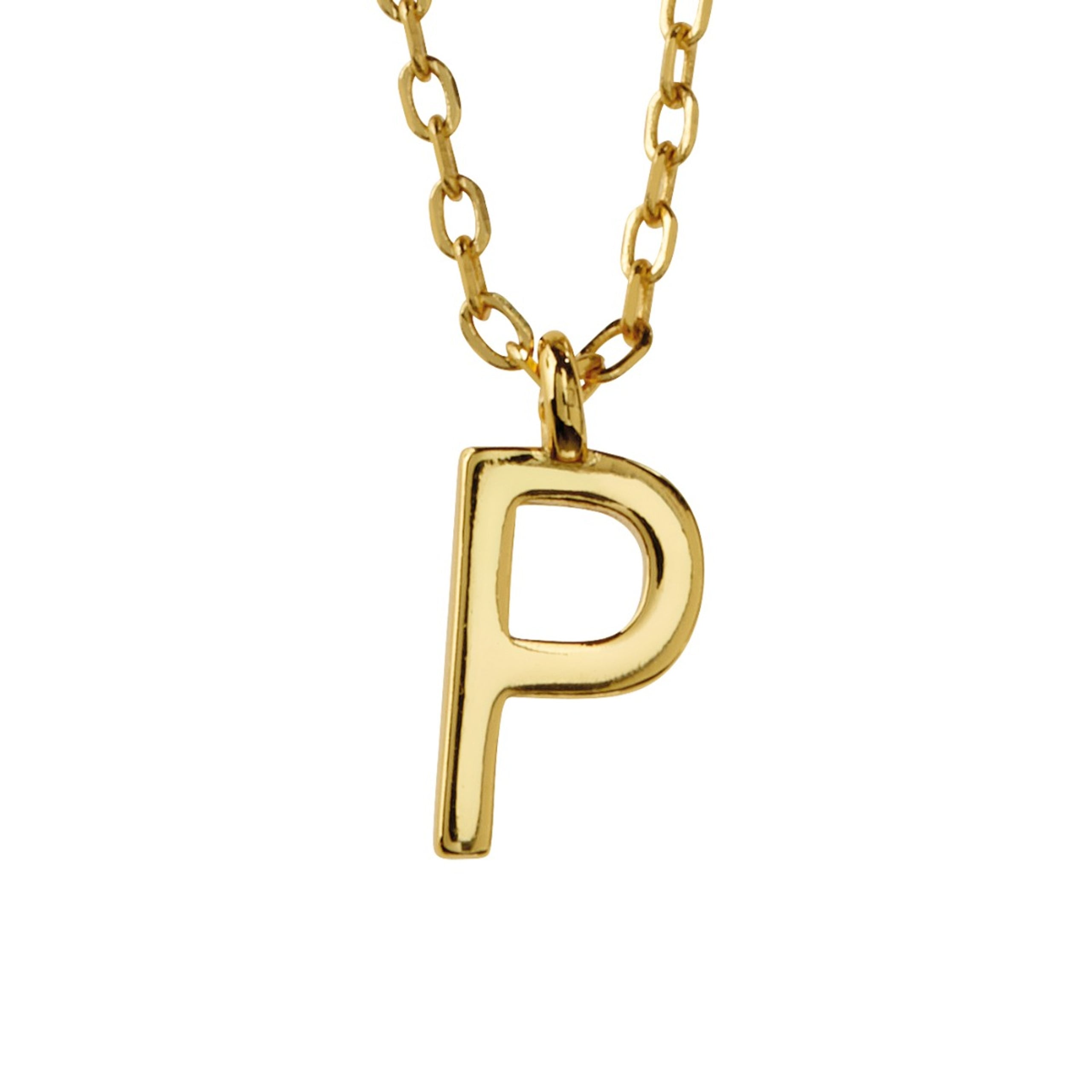 Dette halssmykket med bokstaven P er laget i forgylt sølv og har en størrelse på 10 mm i høyden og 9 mm i bredden. Et matchende kjede i forgylt sølv på 42 cm følger med. Smykket finnes i flere bokstaver og gir mulighet for en personlig stil.