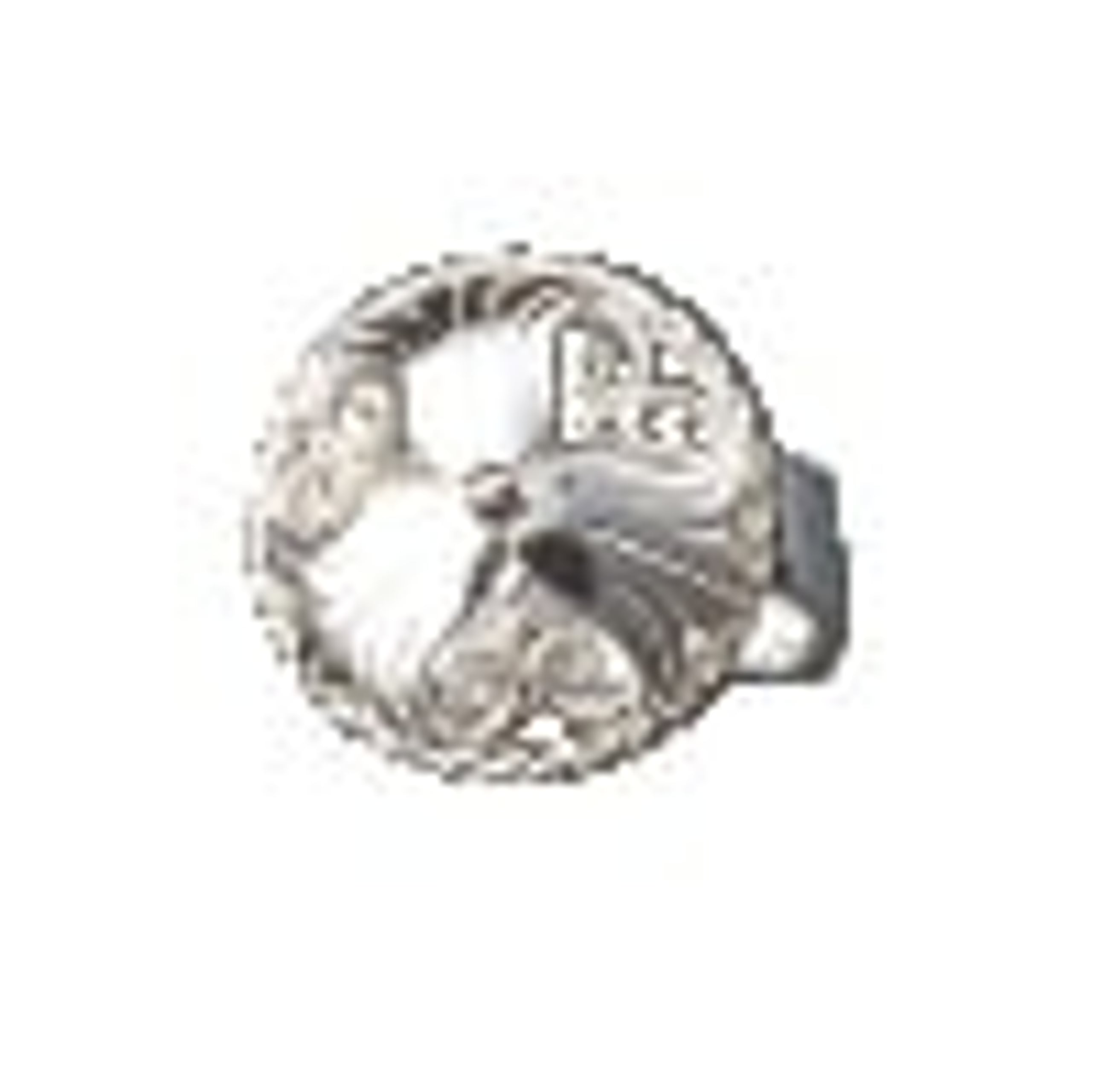 Bunadsring til Lofotenbunad i lyst sølv. Blåklokkemotivet fra broderiet på bunaden går igjen i bunadsringen og motivet er unikt for Lofotenbunaden. Et nydelig tilbehør til bunaden. Størrelsen på bunadsringene kan justeres.