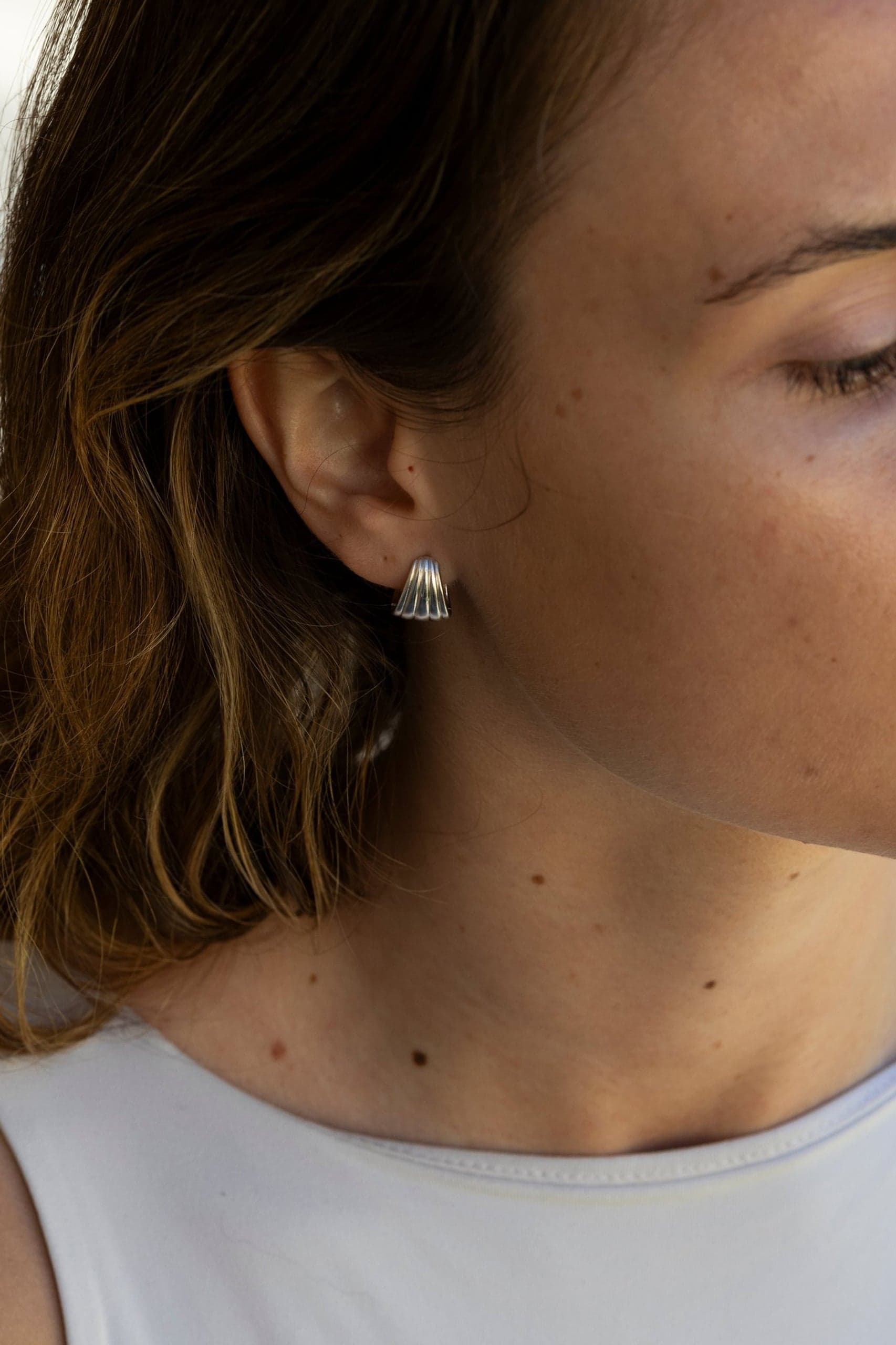 Utrolig trendy og lekre øreringer inspirert av Eleanor Roosevelt, en kvinne som våget å ta plass og bruke stemmen sin. Øreringene kombinerer klassisk eleganse med en moderne kant og fungerer som det perfekte statementsmykket. De ribbede overflatene gir en sofistikert tekstur som fanger lyset vakkert, mens den praktiske click-lukkingen gjør dem enkle å ta på og av. Dette er et tidløst tilbehør som løfter enhver smykkesamling, og en nydelig gave til en du er glad i.