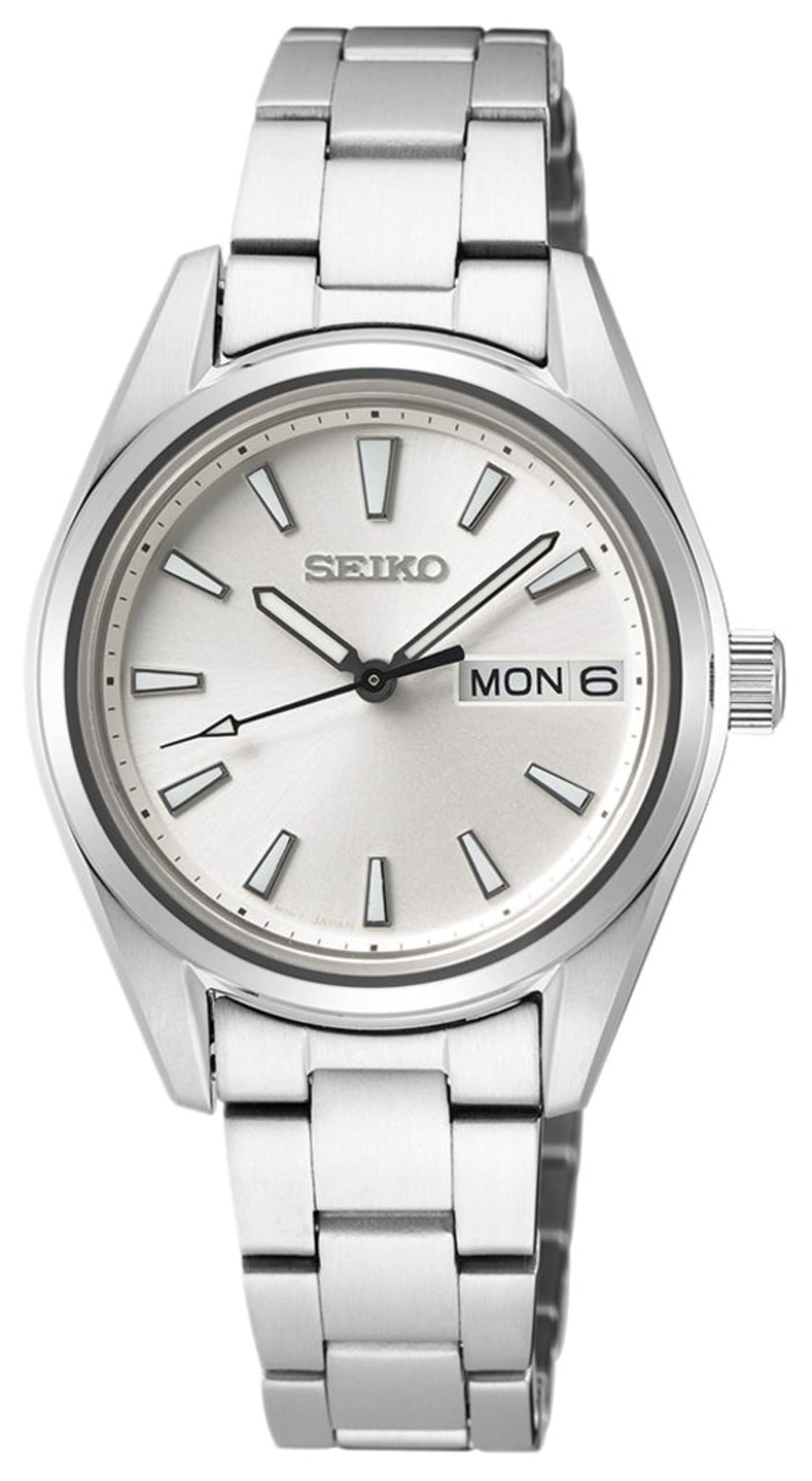 Lekker og elegant klokke fra Seiko til dame med sølvfarget urkasse, lenke og urskive. Den har hvite tallindekser med kalendervisning som viser både dag og dato. Klokken kan brukes til både dusjing, bading og svømming, men kan ikke dykkes med. Klokken passer til alle anledninger og er den perfekte gaven til noen du er glad i.