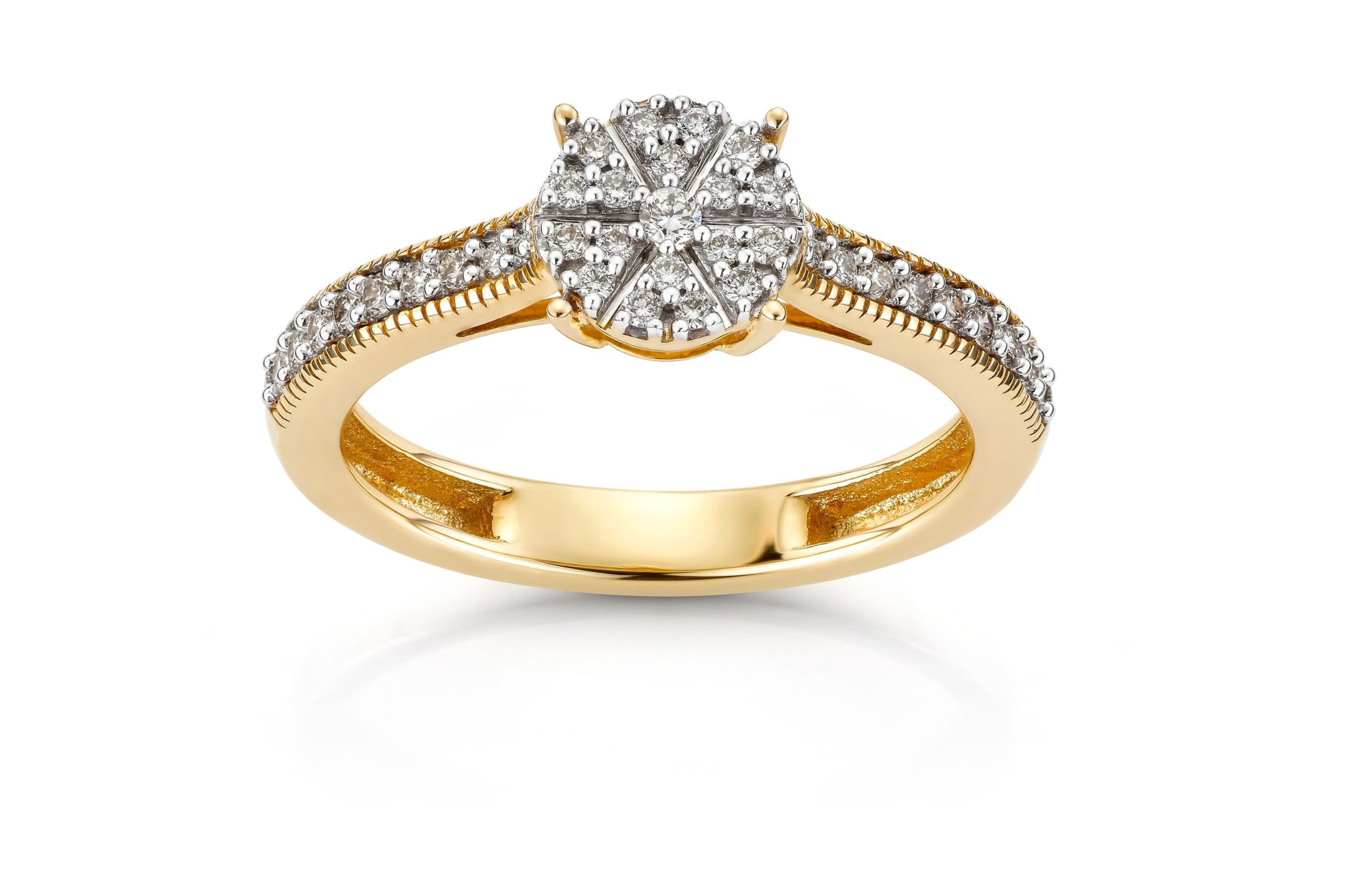 Oppdag tidløs eleganse med denne vakre diamantringen i gult gull fra Bjørklund. Ringen er prydet med 37 glitrende diamanter med en totalvekt på 0,25 karat i W/P1-kvalitet.