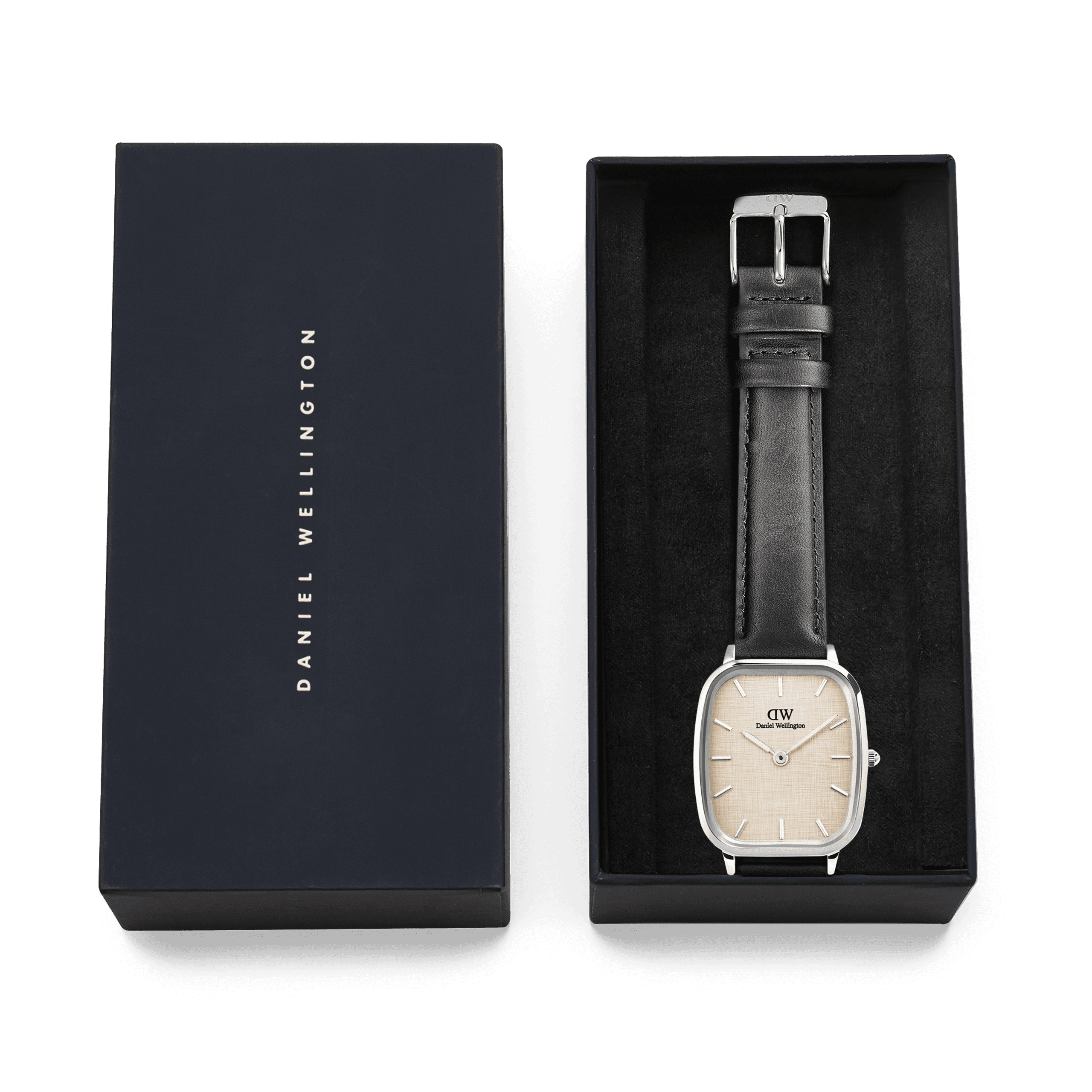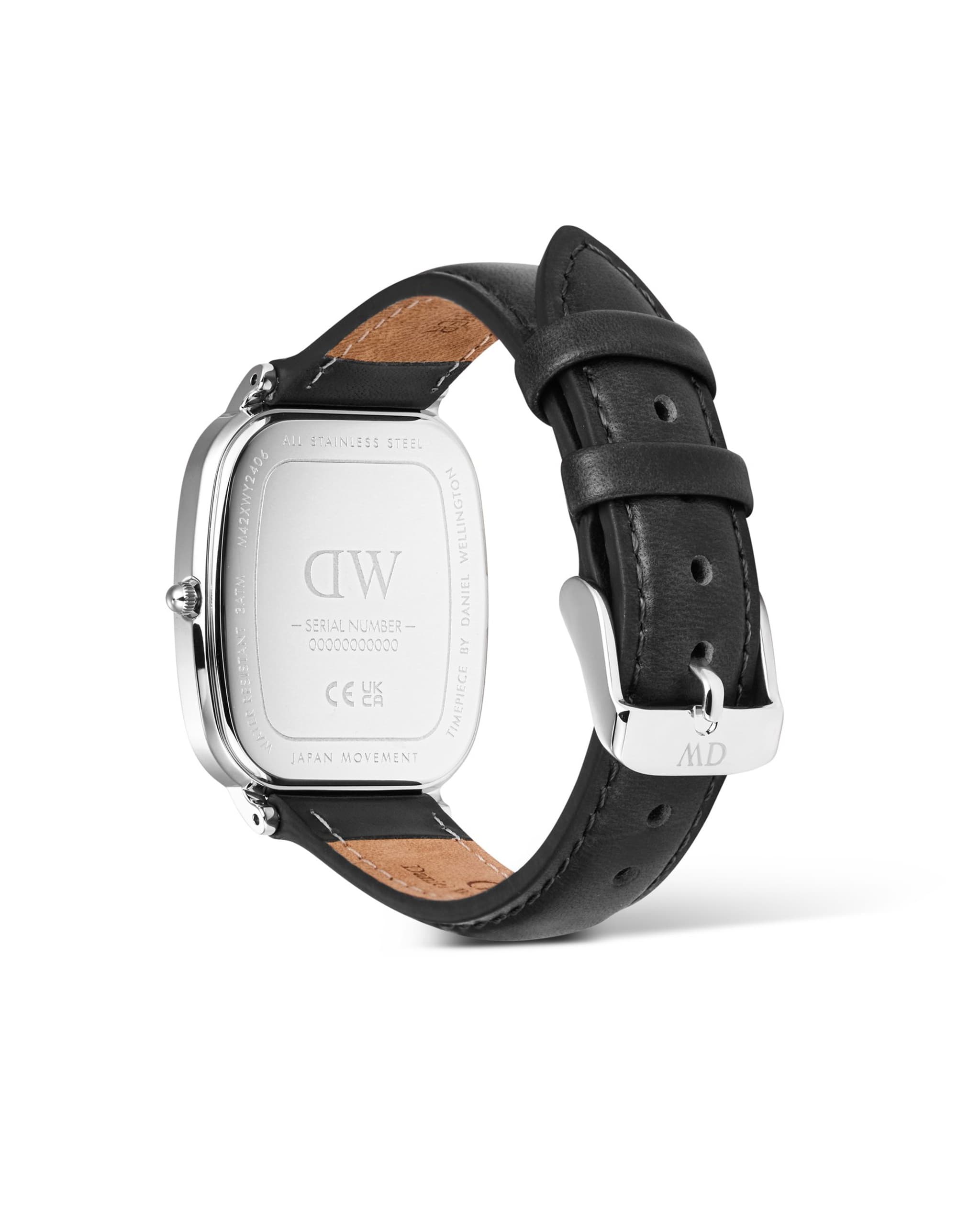 Marlon er det nye tilskuddet til Daniel Wellington. Denne modellen kombinerer et evigvarende design med elegante detaljer. Den firkantete urkassen måler 36x32 mm og er laget i sølvfarget stål med champagnefarget urskive, prydet med enkle og minimalistiske detaljer. Den sorte skinnremmen forsterker det klassiske designet på en utmerket måte. Klokken passer godt til alle anledninger og antrekk. Bruk klokken til fritiden og jobb der du ønsker å pynte deg litt ekstra eller tilføye eleganse i ditt antrekk. Klokken tåler lett vannsprut og bør ikke utsettes for mer vann utover det.