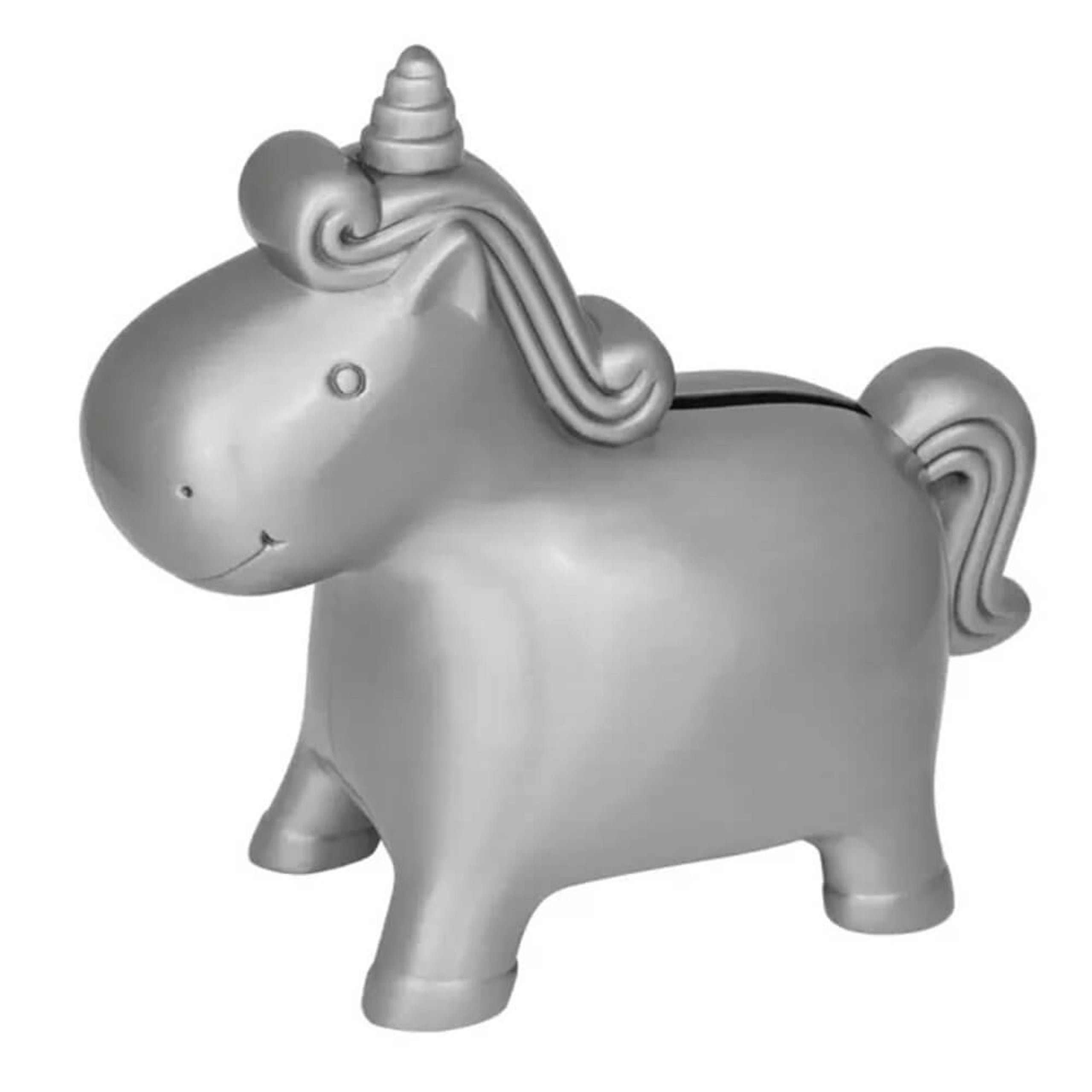 En sjarmerende sparebøsse fra Eik barn formet som en enhjørning, perfekt for små sparere som vil ta vare på pengene sine på en morsom måte.
