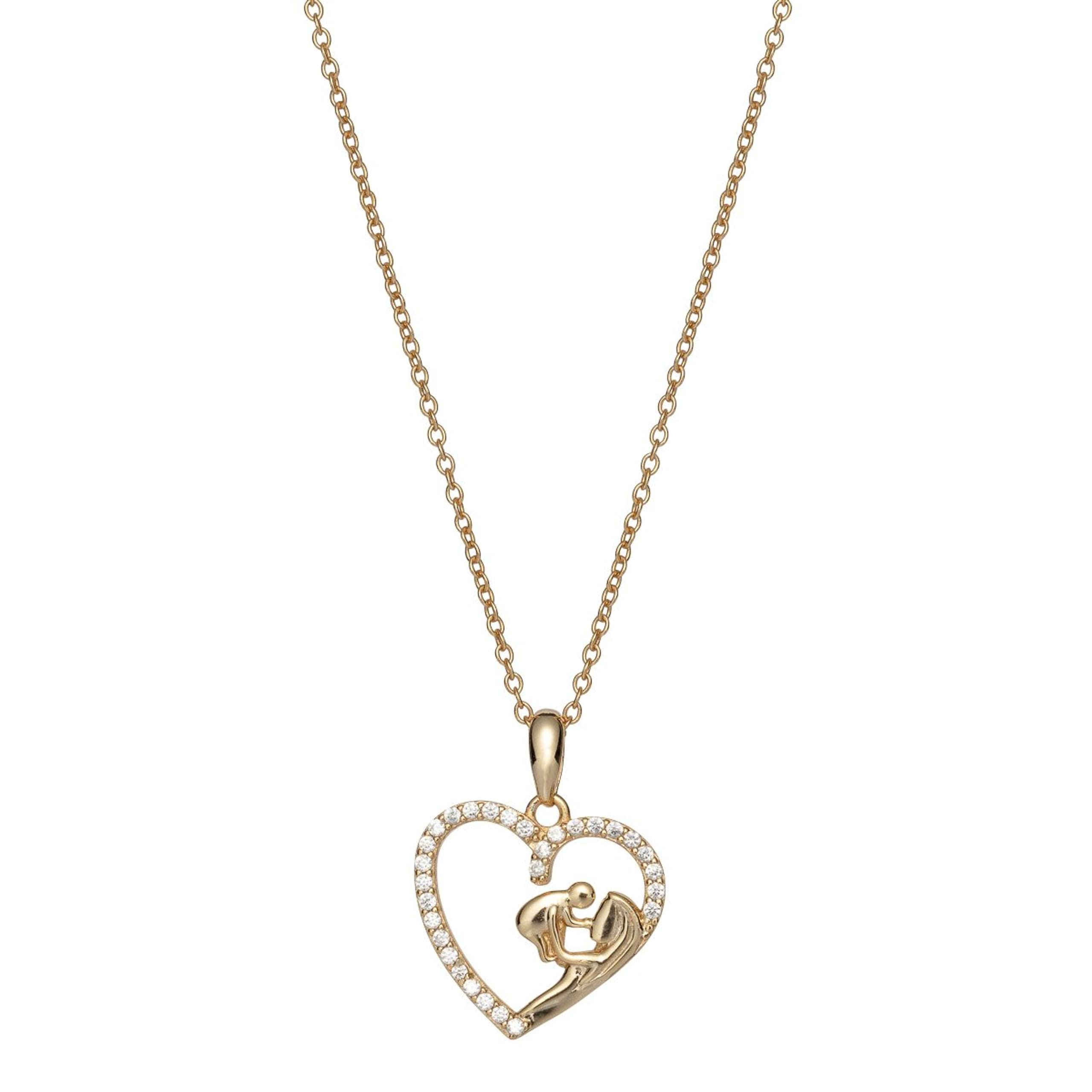 Vakkert halssmykke med mor og barn anheng i forgylt sølv med cubic zirkonia.