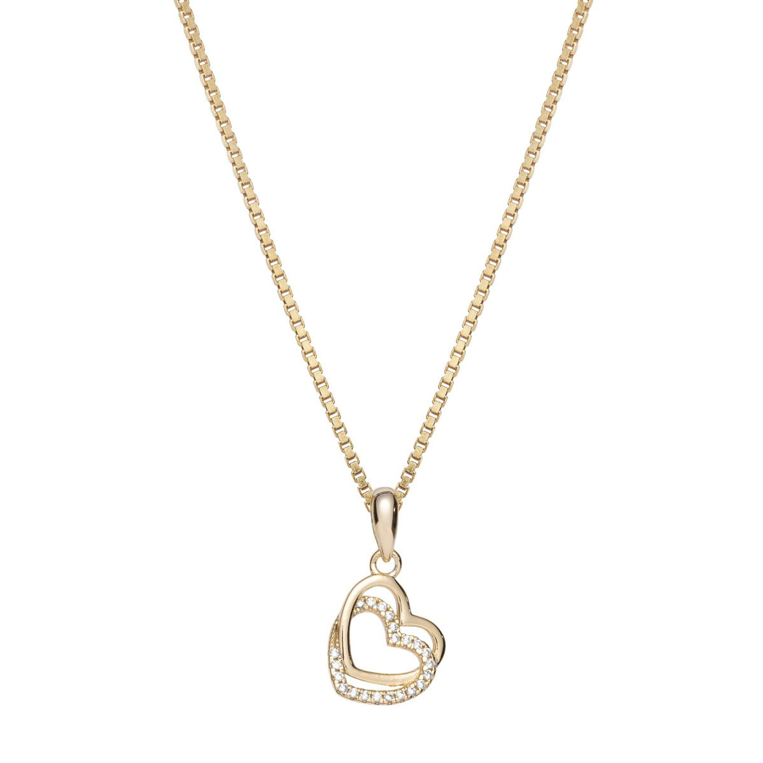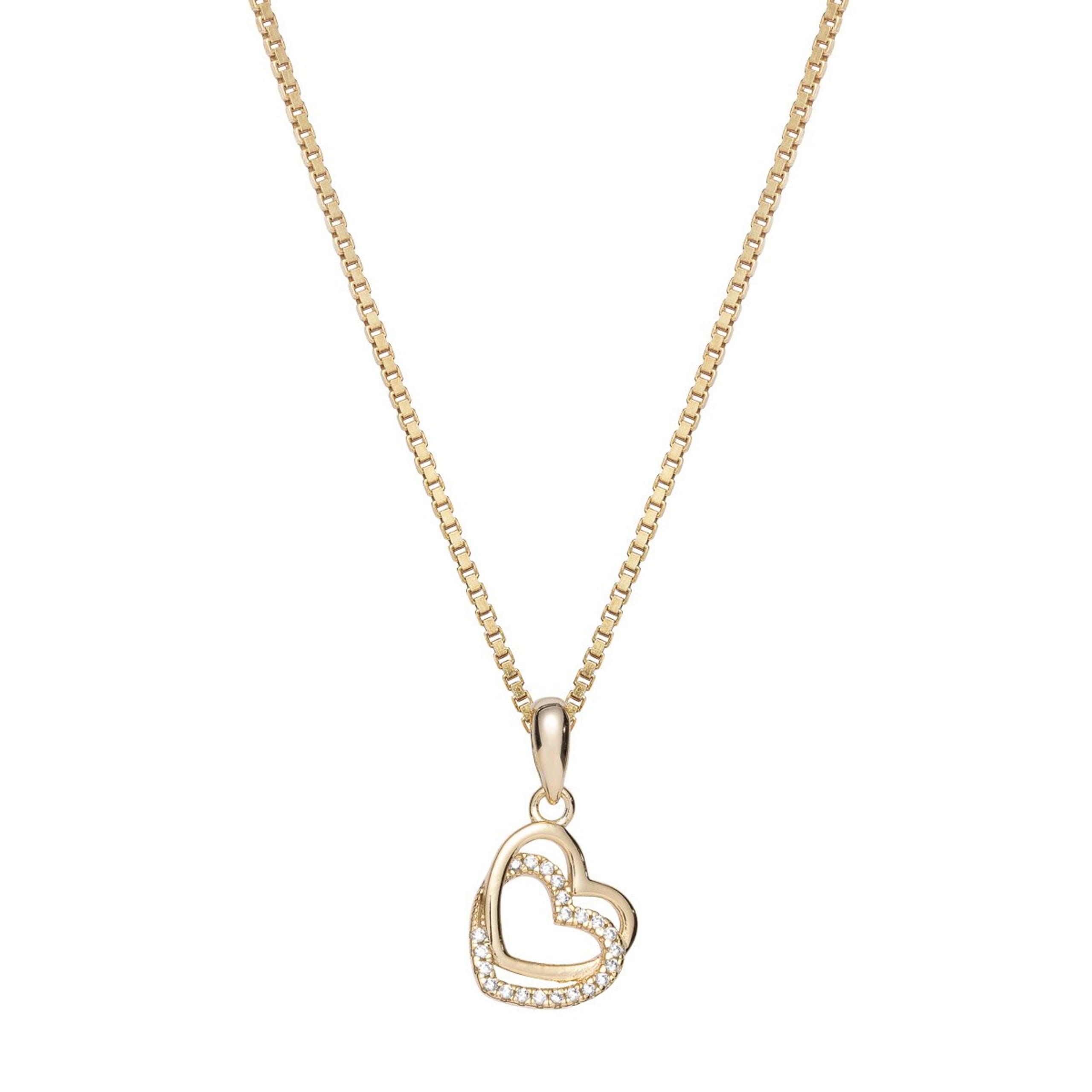 Nydelig halssmykke med to hjerter overlappet sammen. Det ene hjertet er besatt med fine glitrende Cubic zirkonia stener. En fantastisk gave til en du er glad i. Kjede 42 cm medfølger.