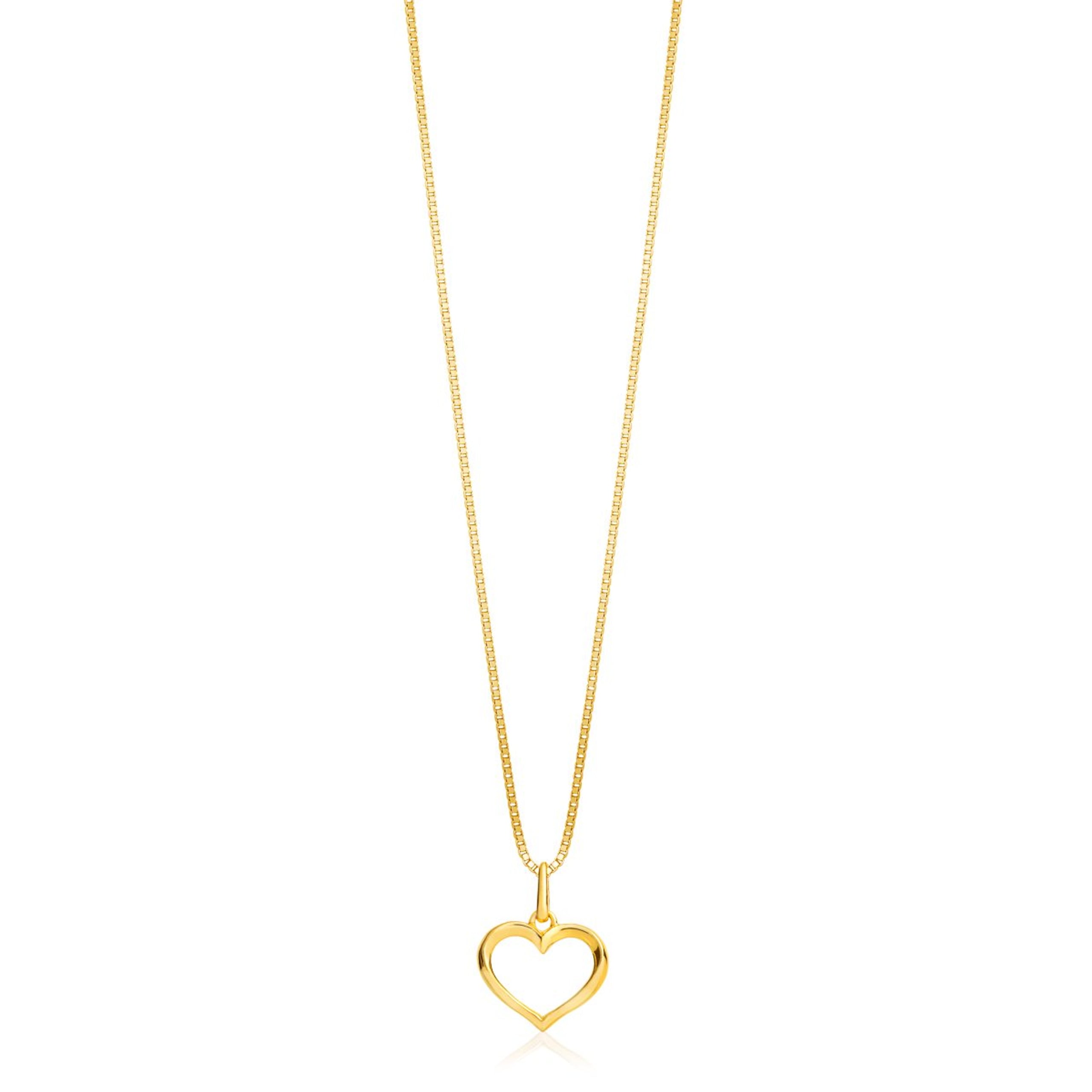 Et stilrent halssmykke med hjerteanheng. Anhenget er laget i 9 karat/375 gult gull og måler 18 mm i høyde og er 11 mm bred. Kjedet er laget i forgylt sølv. Dette halssmykket er en nydelig gave til hun du er ekstra glad i. Kjede 42 cm medfølger.