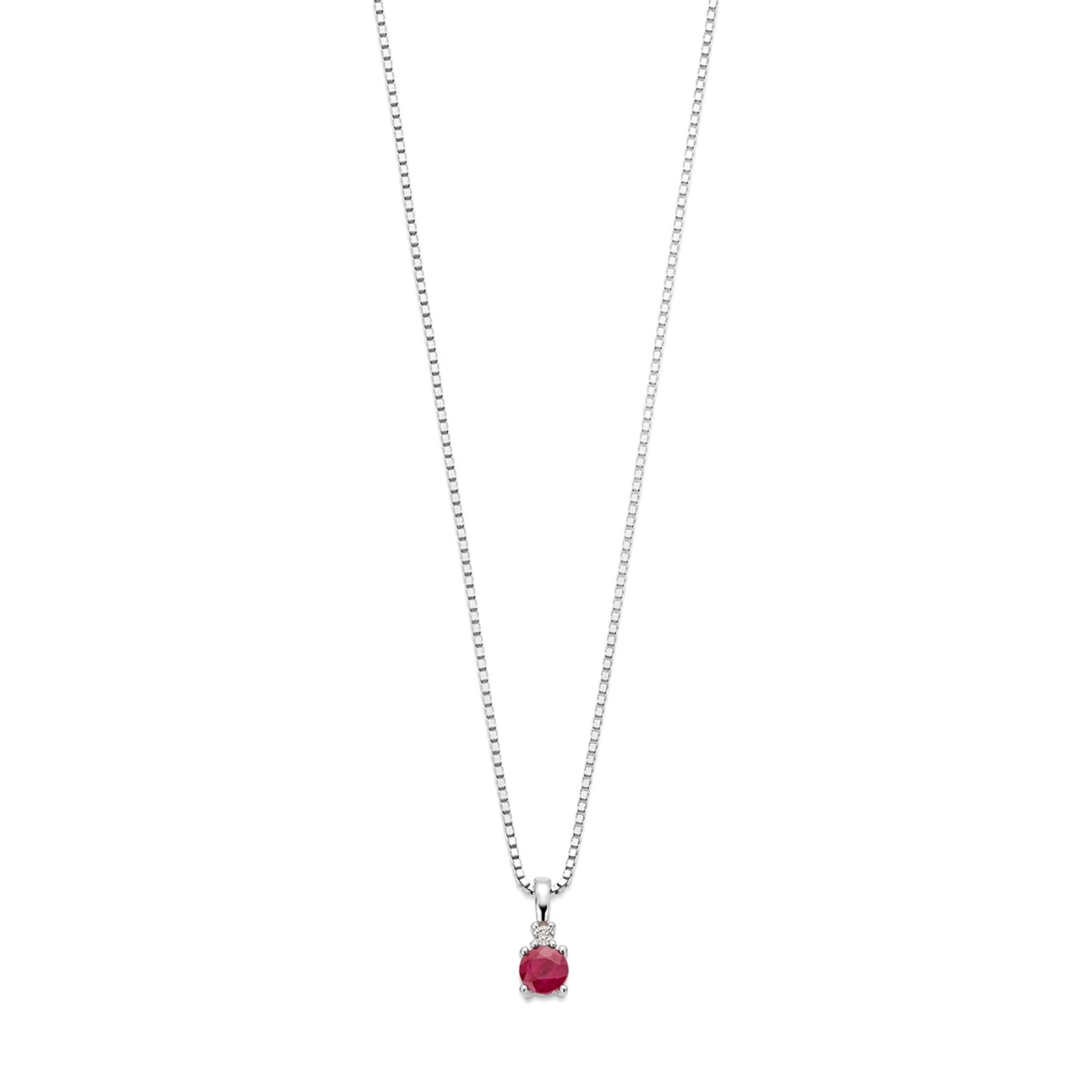 Et nydelig halssmykke med rubin og diamant. Rubin er en verdifull edelsten og er også kjent som en fødselssten til de som er født i juli måneden. Stenen er kjent for sin nydelig rød farge. Kjedet som følger med er laget i 925 sølv. Dette er en fantastisk gave til en du er glad i.