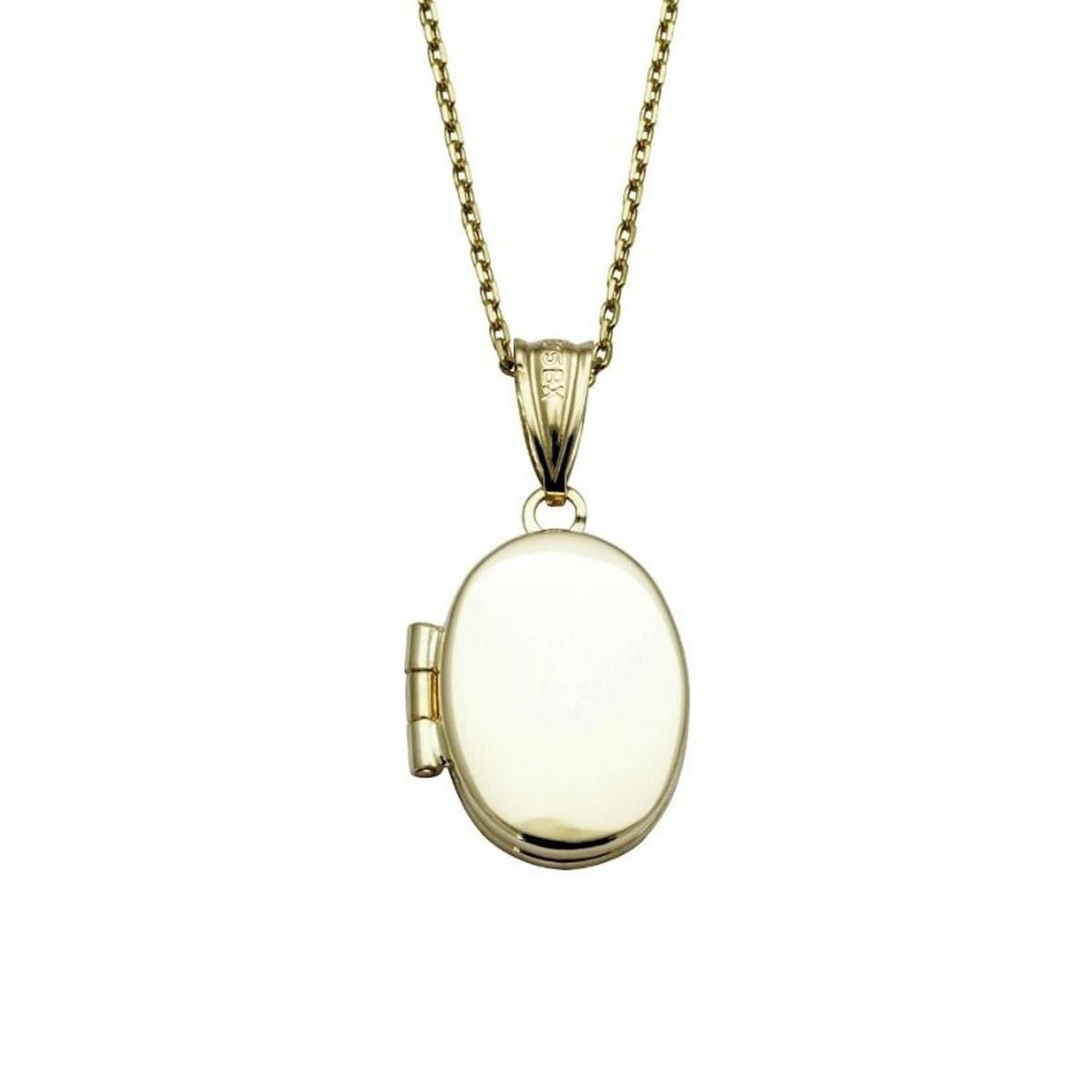 Nydelig halssmykke med ovalformet medaljong. Her kan det sette inn to små bilder på innsiden av medaljongen. Medaljongen kan også graveres som gjør halssmykket mer personlig. Dette er den perfekte gaven til en du er glad i og til spesielle anledninger. Kjedet som følger med er laget i forgylt sølv.