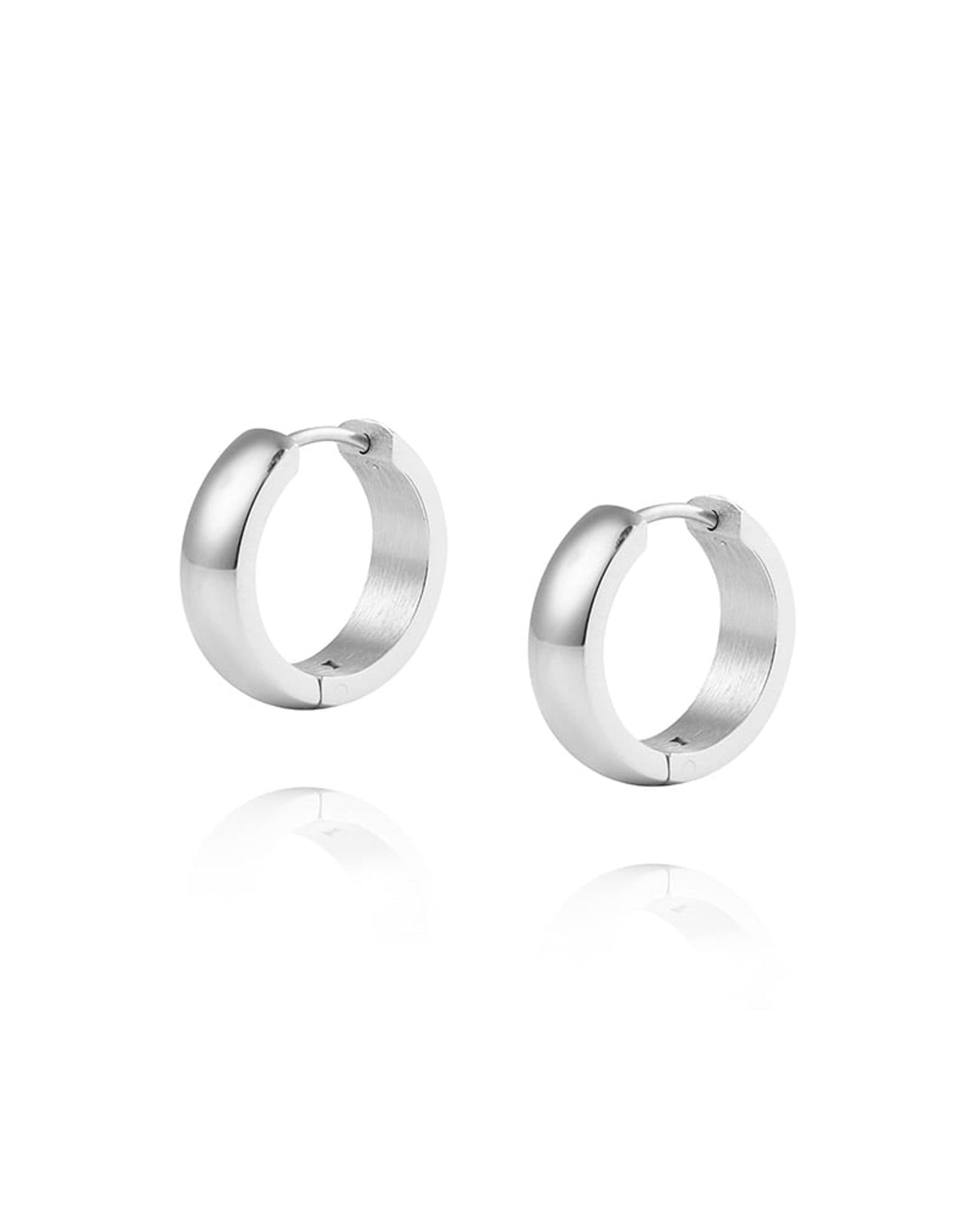 Flotte øreringer fra Mockberg som kommer i flere størrelser. Chunky Silver Hoops er tidløse og klassiske øreringer i firkantet profil og glatt overflate som er laget i stål med PVD-belegg, et sterkt belegg som er motstandsdyktig mot hverdagslig slitasje og tåler vann uten at fargen endrer seg. Denne modellen måler 18 mm og betegnes som large. Øreringene er like fine å bruke til hverdagen som til fest.
