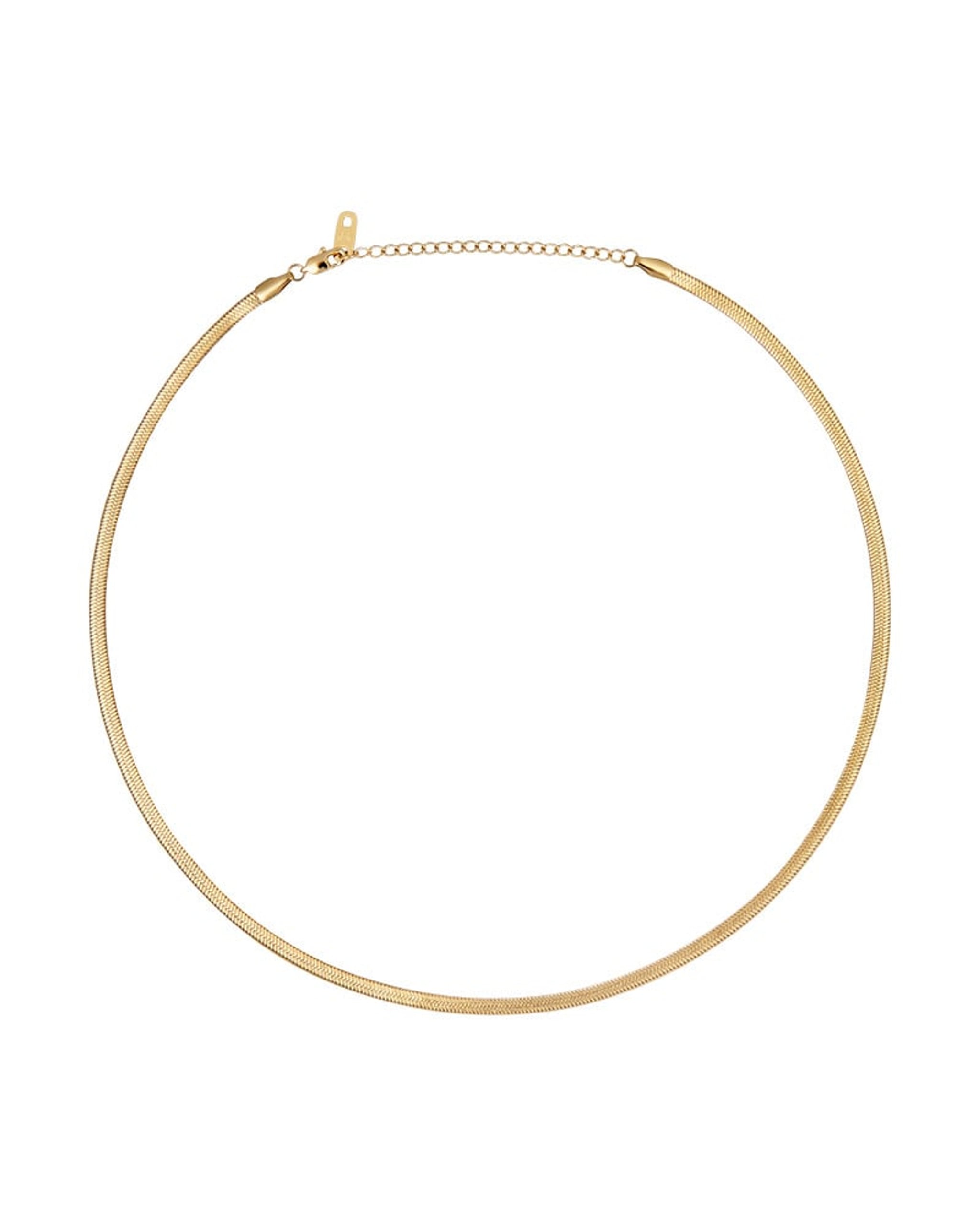 Elegant og flott halskjede fra Mockberg. Thin Snake Necklace er et slangekjede som kommer i flat fasett og er laget i stål og gullbelagt med 18 karat PVD-belegg. Dette belegget gjør at halskjedet er motstandsdyktig mot hverdagslig slitasje og at det tåler vann uten at fargen endrer seg. Halskjedet er fint alene og passer godt til layering med andre smykker.