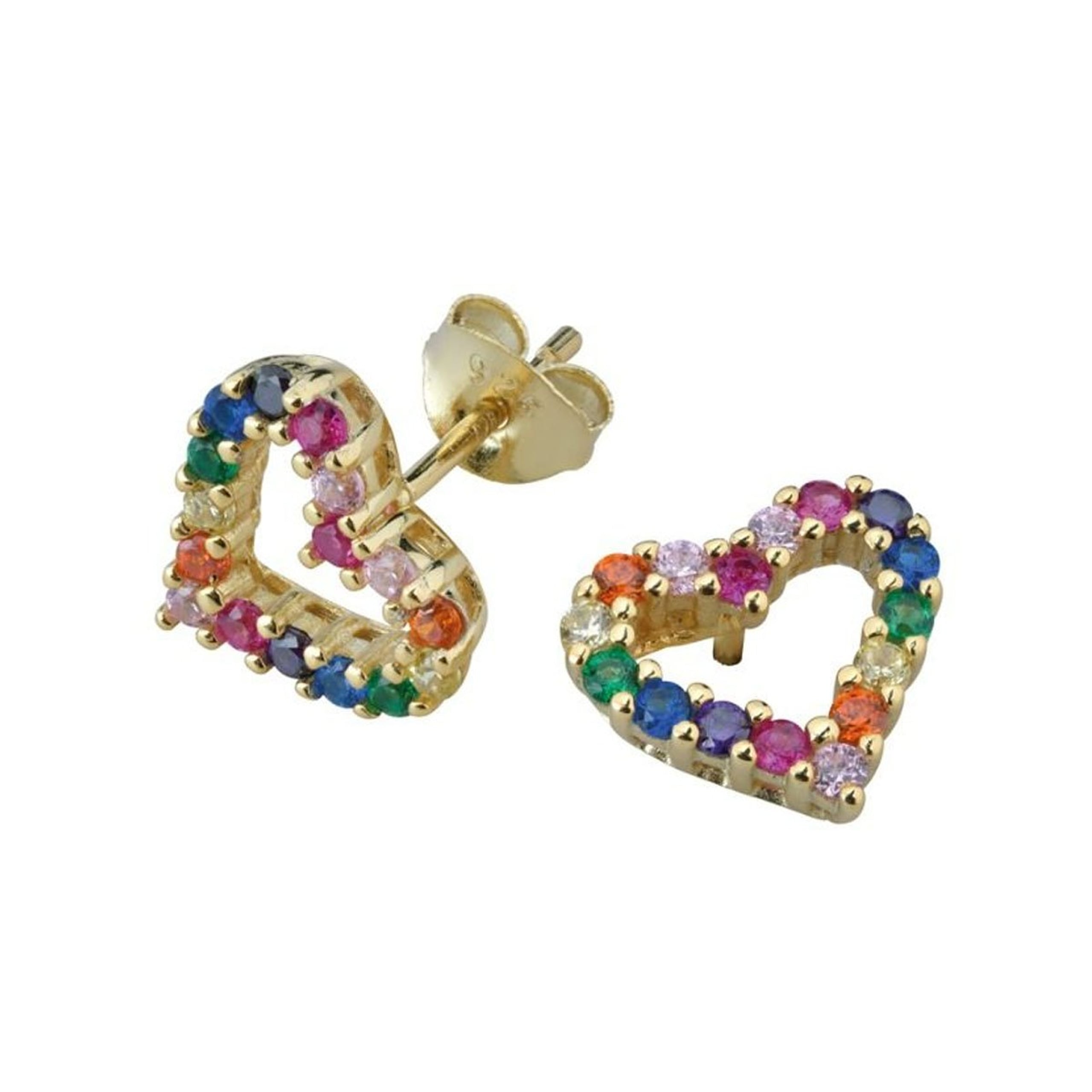Fargerike øredobber med glitrende stener som minner om regnbuen. Øredobbene er formet som hjerter og er en flott gave til du er ekstra glad i. Det finnes også tilhørende halssmykke å lage et komplett smykkesett. Øredobbene selges i par.
