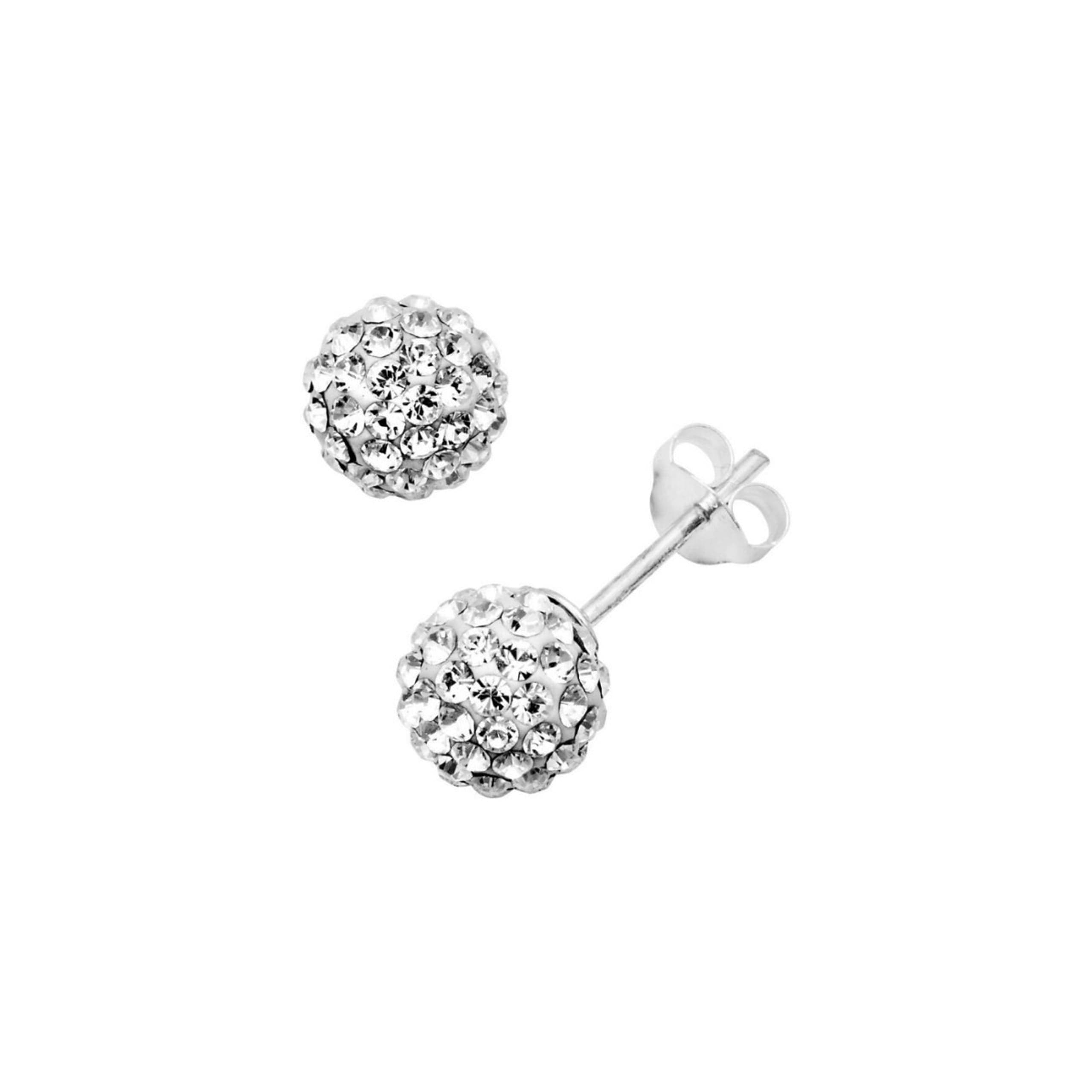 Stilren og tøff ørepynt i 925 sølv med hvite glitrende krystaller . Størrelsen på kulen er 8 mm. En fin gave til alle.