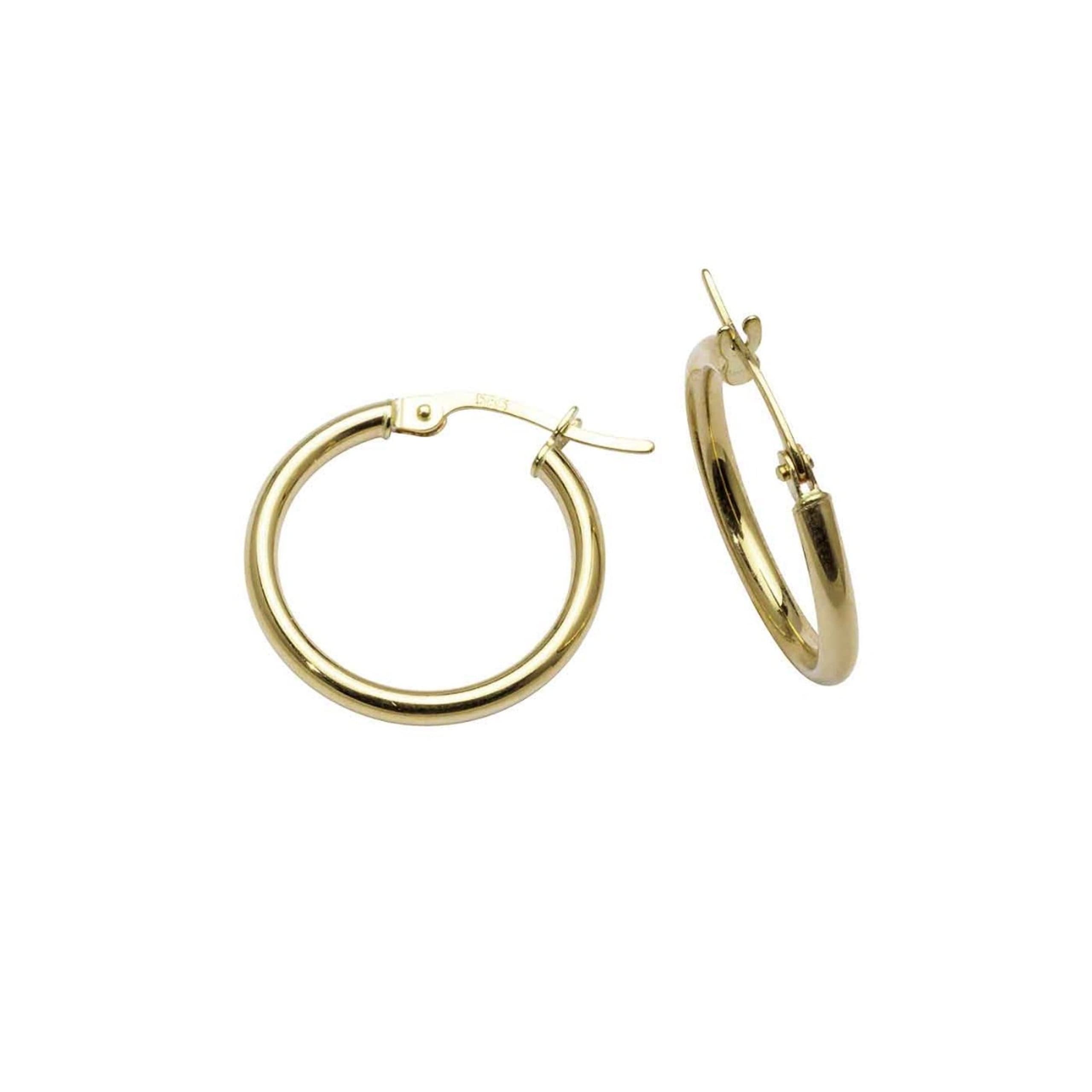 Stilige og fine øreringer i gult gull i 15 mm med rund profil og solide fester. Øreringer er aldri feil og passer til alle anledninger. Øreringene kommer i forskjellige størrelser og de er fine å bruke sammen med andre øredobber om du har flere hull i ørene.