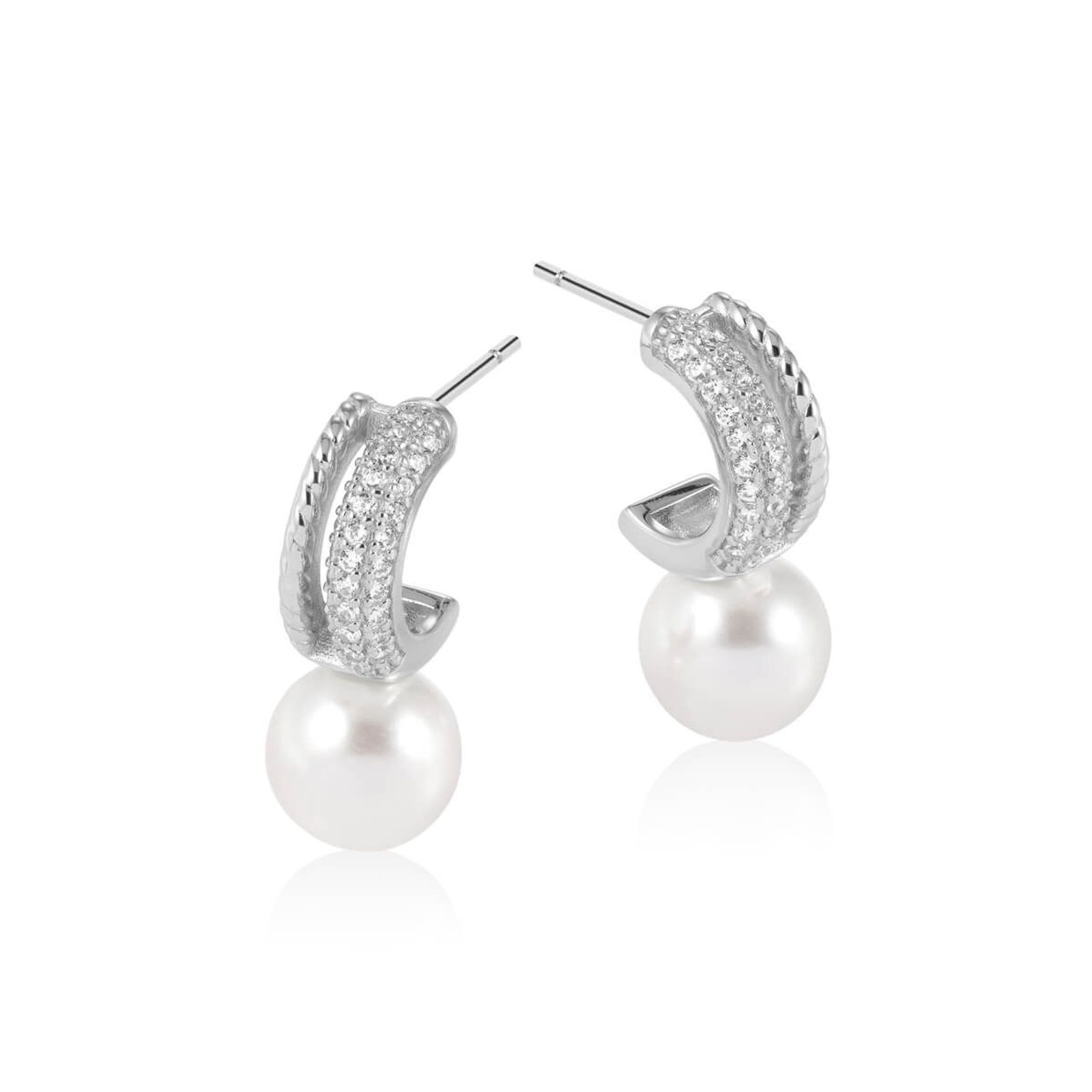 Øreringer med perle i 925 sølv