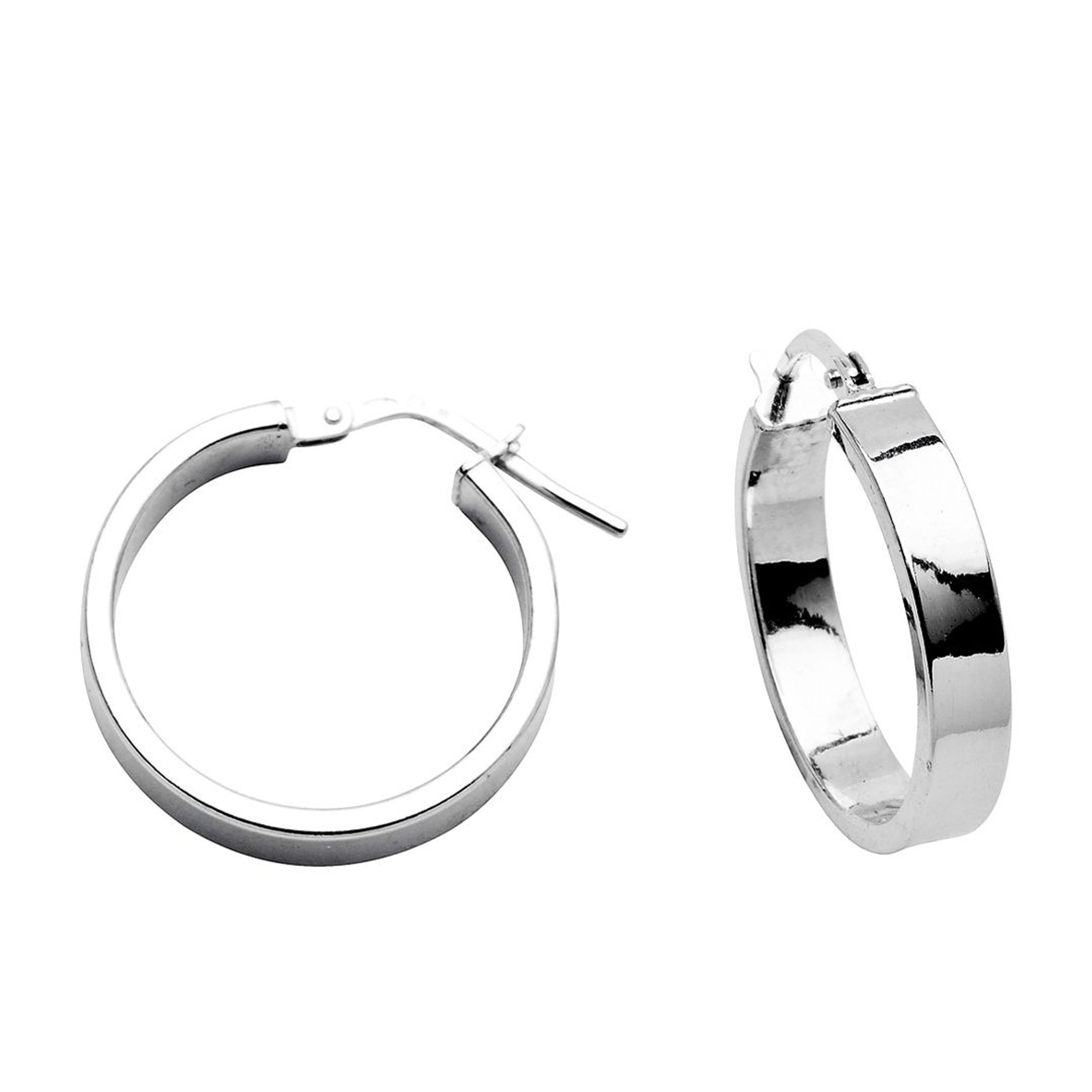 Flotte øreringer i rhodinert sølv, med en diameter på 15 mm og en moderne firkantet profil. Det stilrene designet gjør dem like fine alene som i kombinasjon med andre øredobber for deg med flere hull i ørene.