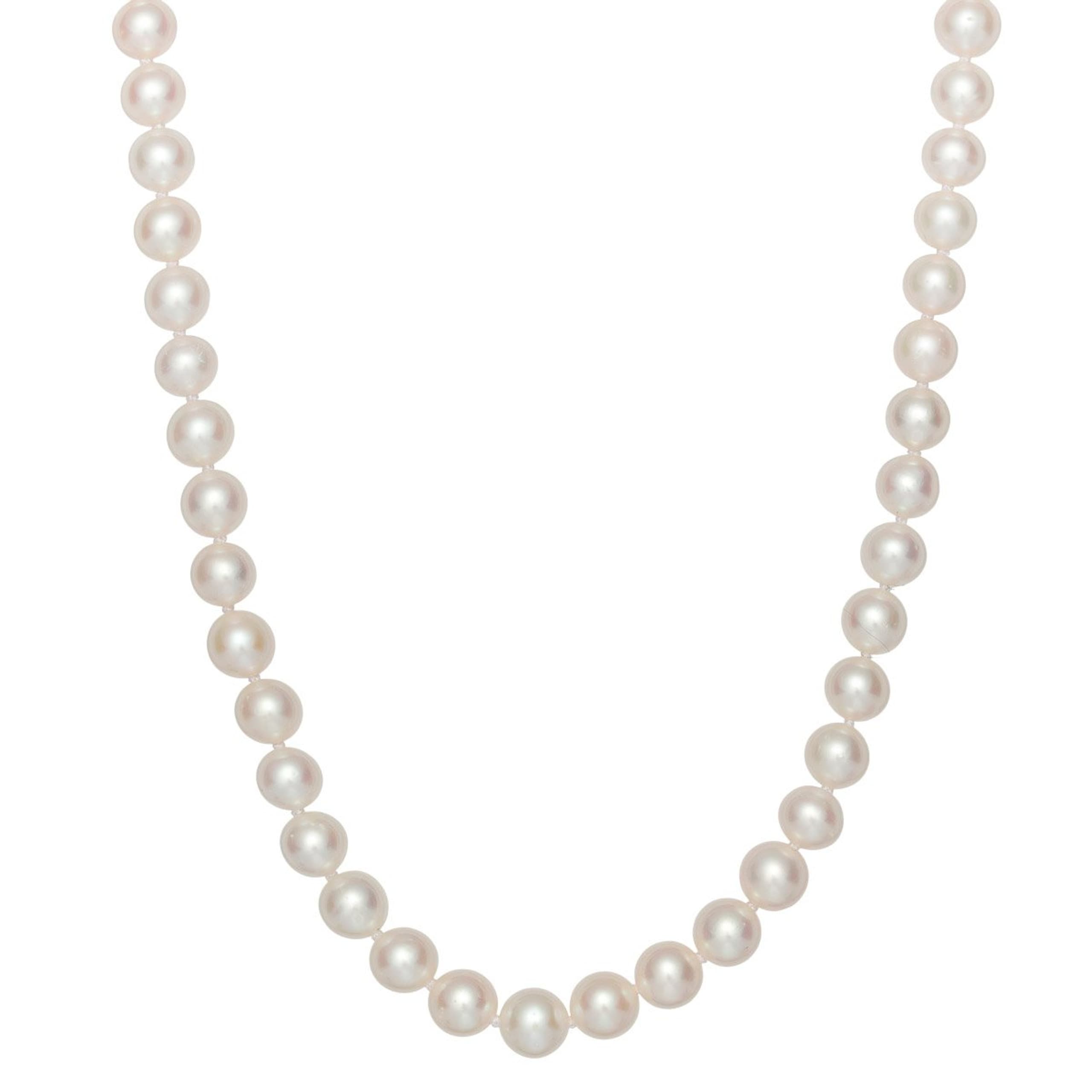 Perlekjeder er tidløse og allsidige smykker som passer til mange antrekk og anledninger. Perlekjeder kan fint brukes alene eller sammen med andre smykker. Her kan man skape forskjellige uttrykk med layering som enten er klassisk eller trendy. Ferskvannsperlene på dette halskjedet er 7-7,5 mm store og perlekjedet er 50 cm langt.
