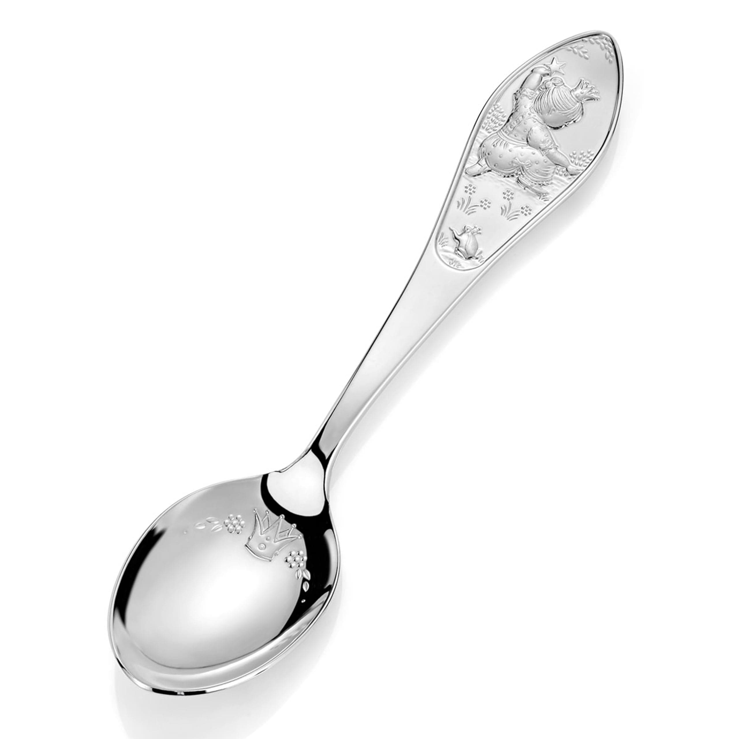 Nydelig barneskje med prinsessemotiv. Skjeen kan graveres med navn og dato, noe som gjør den til en personlig og betydningsfull gave. Perfekt til dåp eller navnefest.