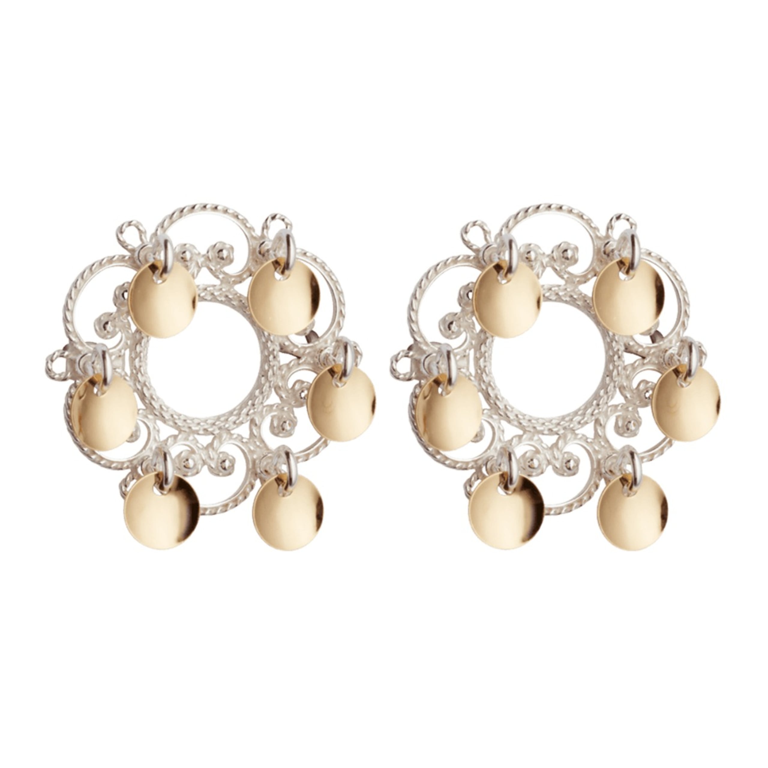 Disse sjalfestene i hvitt sølv med forgylte løv er nydelige til nordlandsbunader. De kan også brukes som barnesøljer og de selges som par.