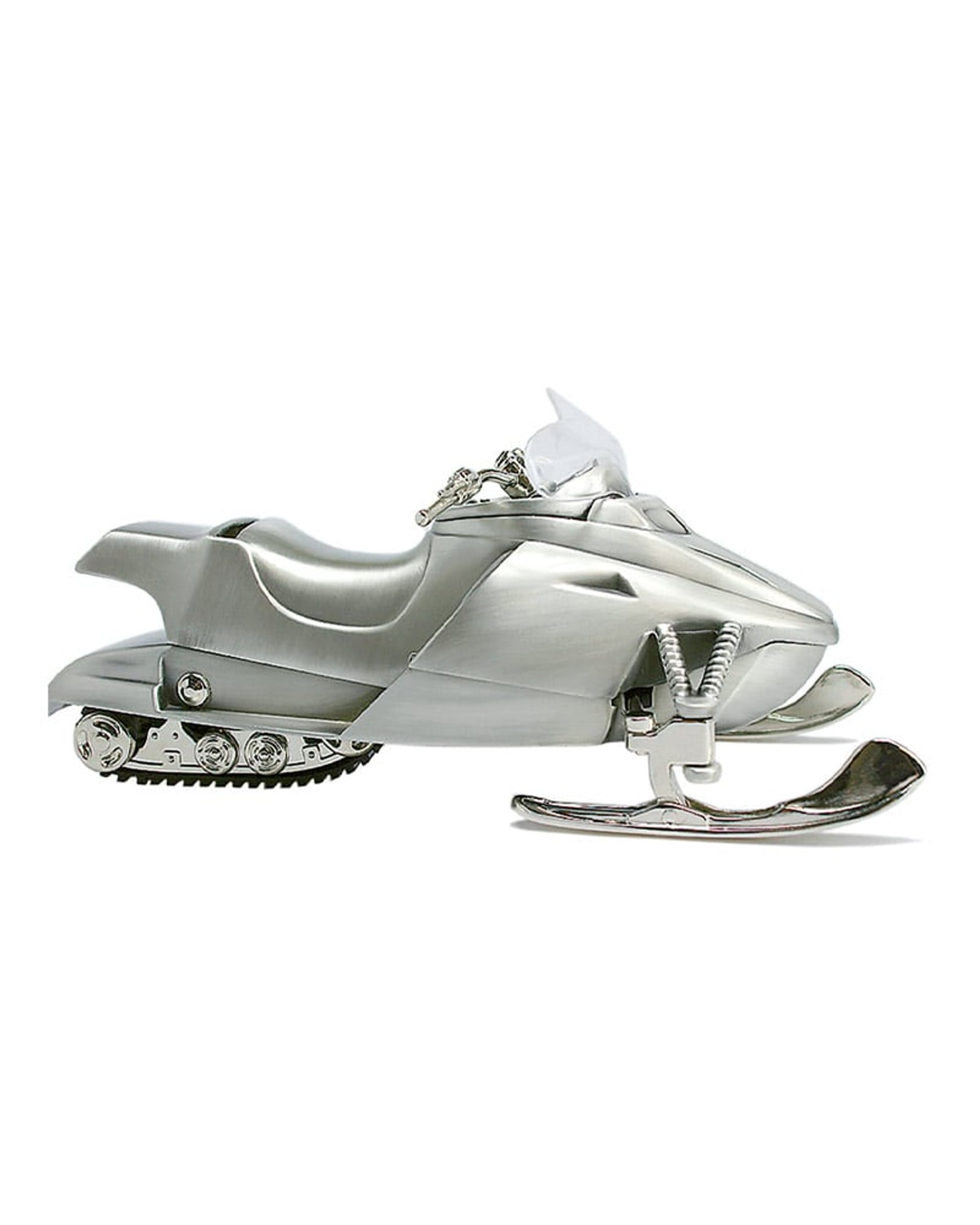 En tøff og fortinnet sparebøsse formet som en snøscooter. Dette er en fantatisk gave til alle anledninger som bursdag og dåp.