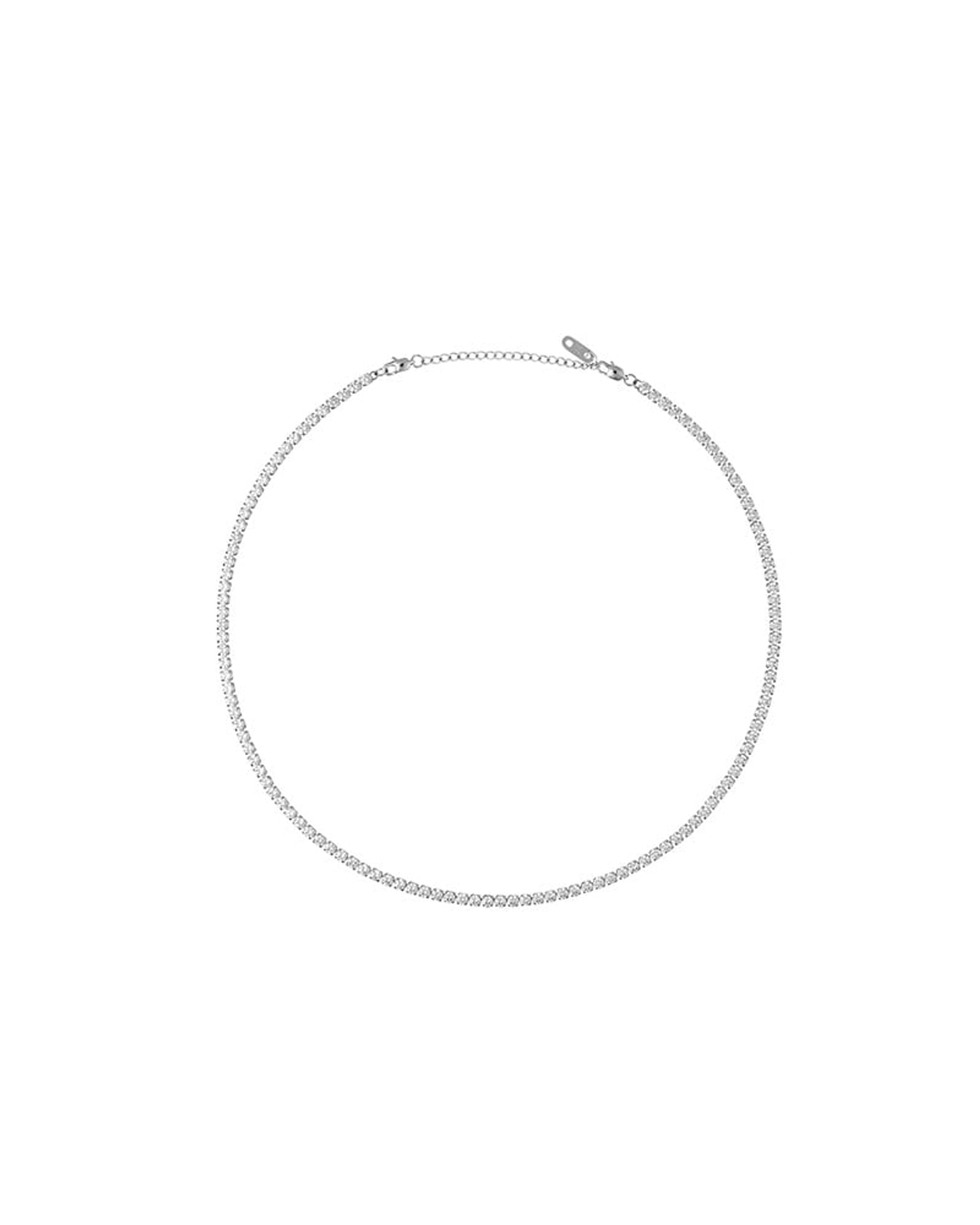 Elegant og flott halskjede fra Mockberg. Også kalt tennissmykke, dette fine smykket kommer med rader av glitrende cubic zirkonia stener. Halskjedet er laget i stål og belagt med PVD-belegg. Dette belegget gjør at halskjedet er motstandsdyktig mot hverdagslig slitasje og at det tåler vann uten at fargen endrer seg.