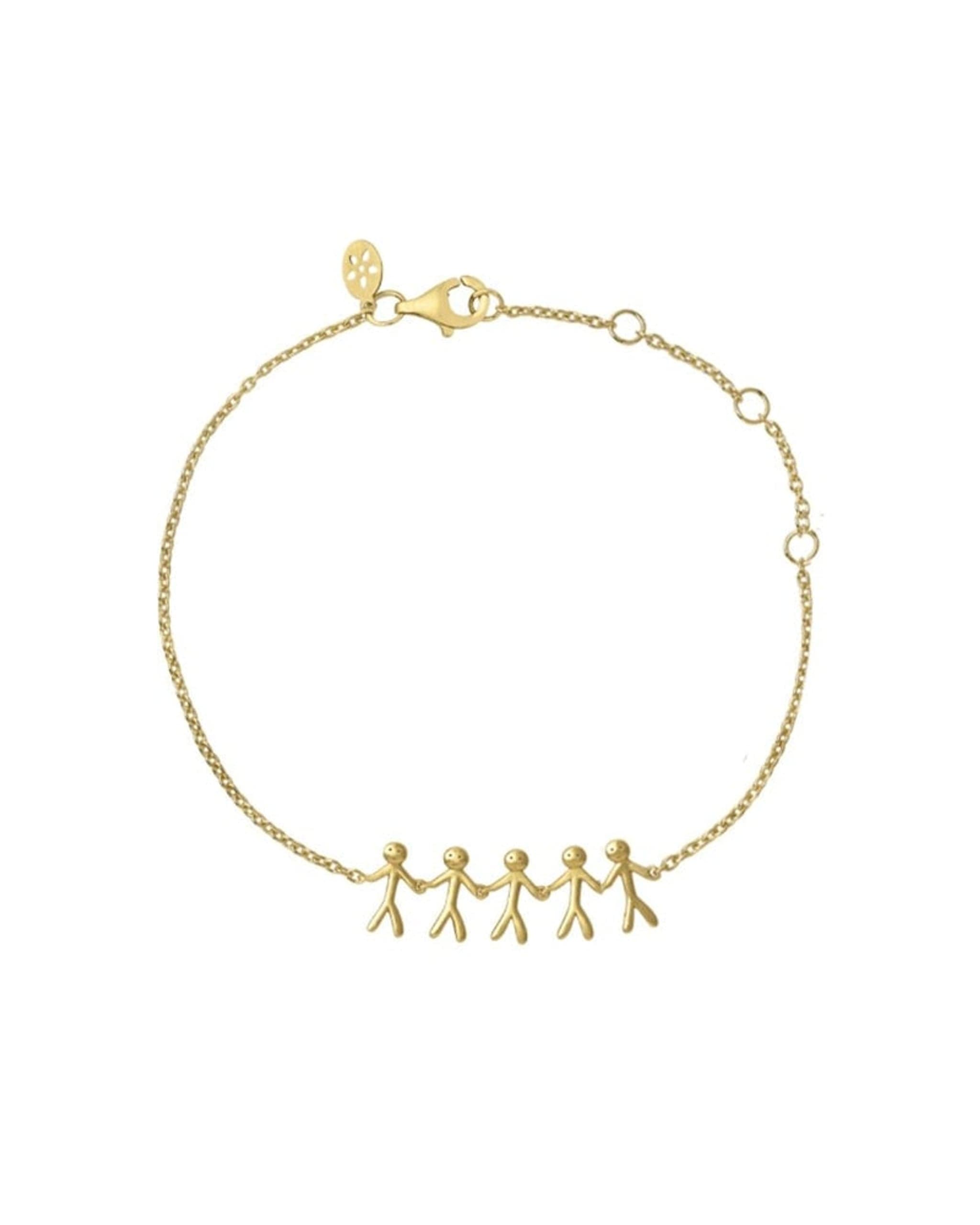Dette armbåndet er en nydelig gave til en du er veldig glad i. Fem mennesker som holder hender som symboliserer de vi elsker å være sammen med. Hver person er 10 mm høy og 5 mm bred. Armbåndet er inspirert av kjærlighet og de menneskene vi omgir oss med.