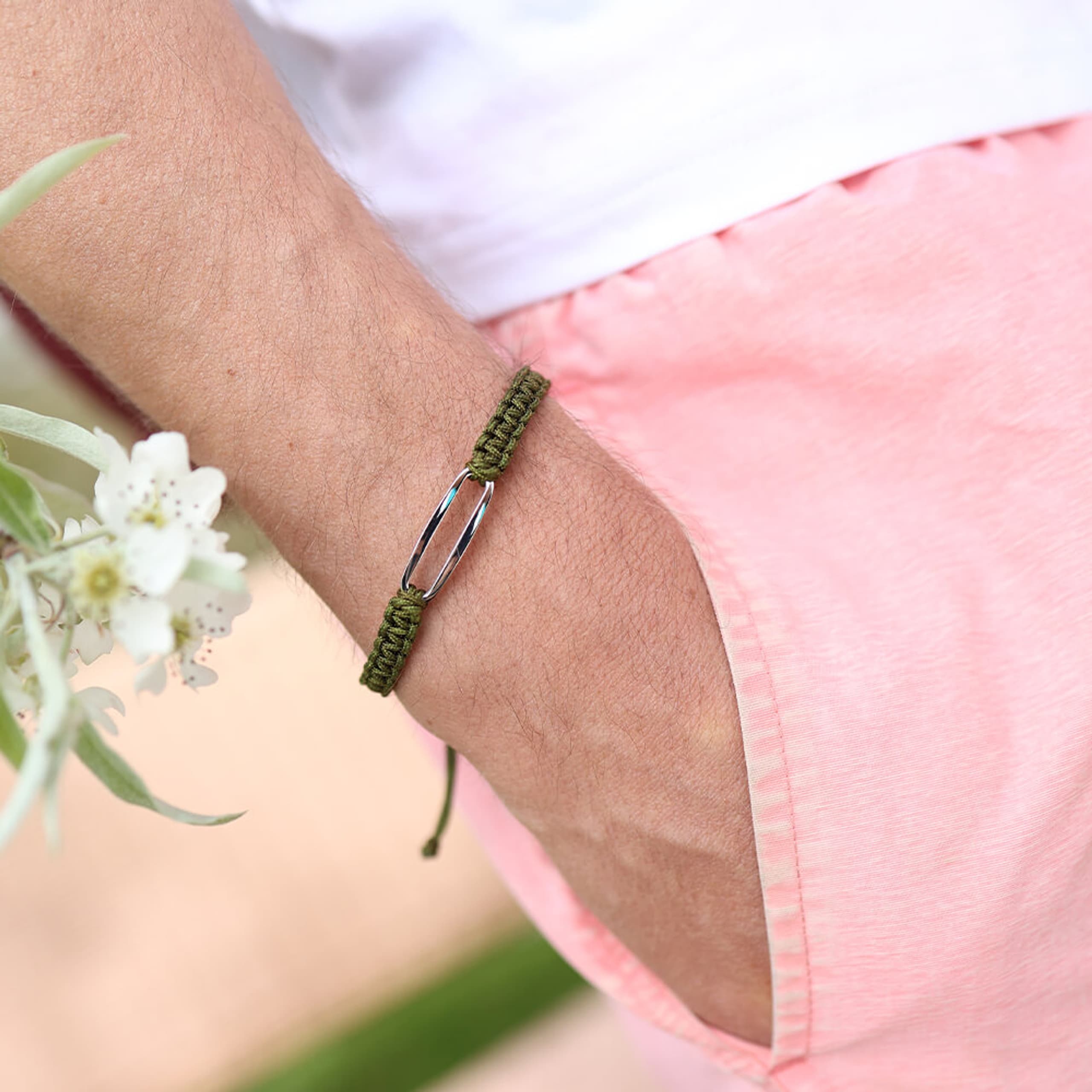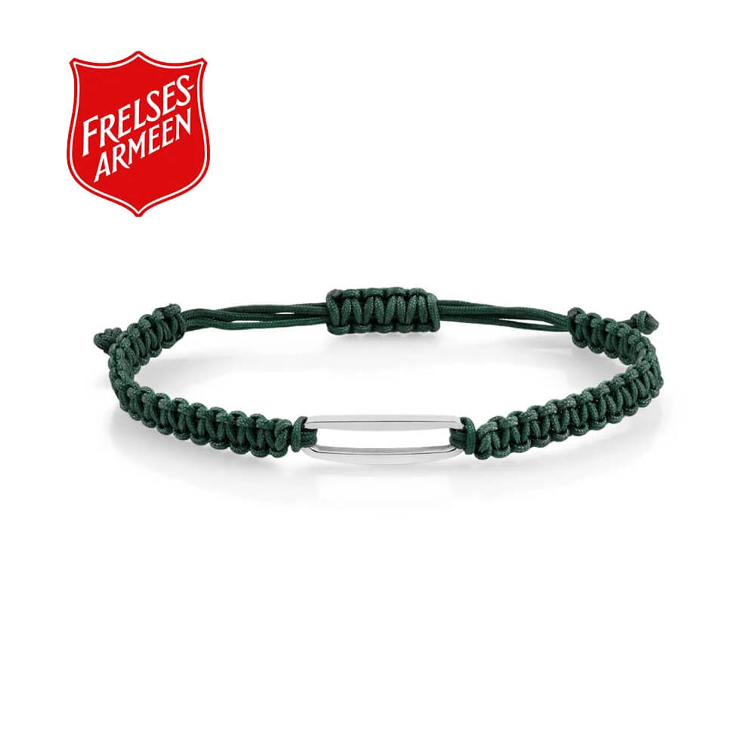 Det populære vennskapsarmbåndet vårt er nå tilgjengelig med en stilren og nøytral dekor i stål. Dette grønne armbåndet passer godt til både damer og herrer. Armbåndet kan fint brukes alene, men kan også se utrolig flott ut kombinert med andre armbånd og klokker for den perfekte layering. For hvert solgte armbånd støtter vi Frelsesarmeen med varme måltider til noen som trenger det. Gi en gave som varmer.