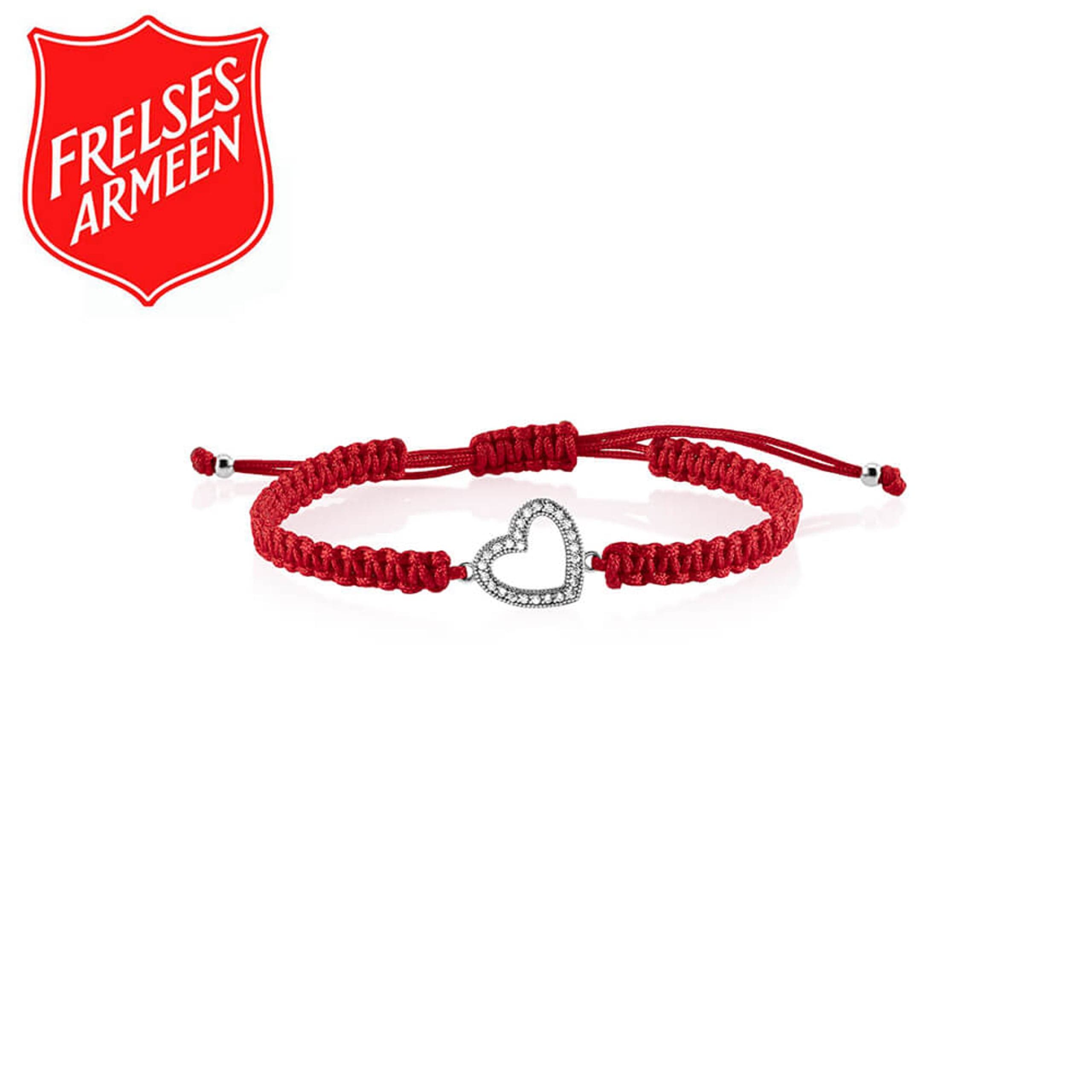 Vårt populære vennskapsarmbånd i flott rød farge besatt med glitrende Cubic zirkonia. For hvert solgte armbånd støtter vi Frelsesarmeen med varme måltider til noen som trenger det. Gi en gave som varmer.