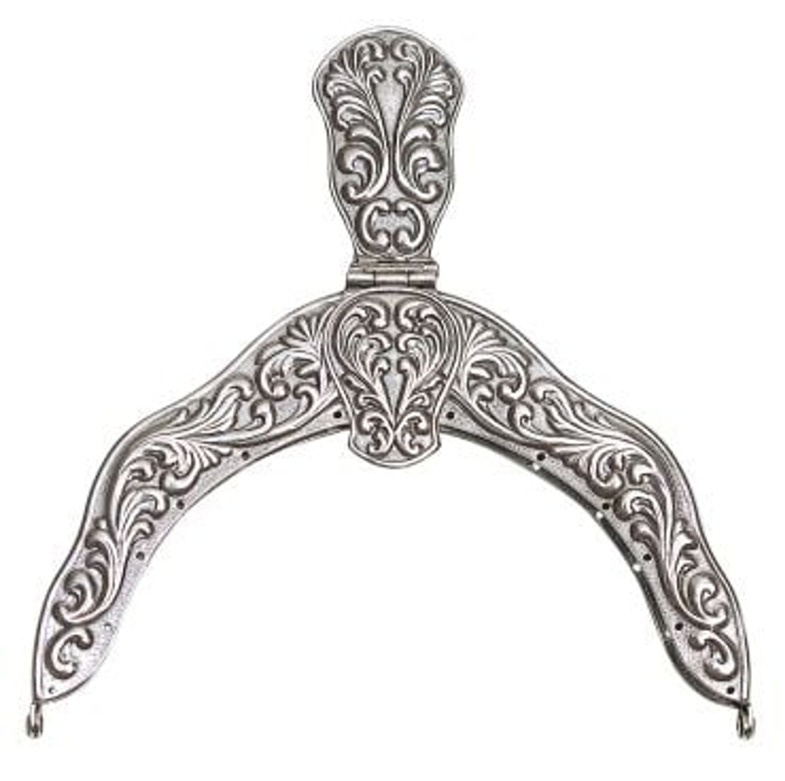En rimeligere variant av veskelås som har et mer tradisjonelt uttrykk. Dette er en detaljrik og vakker veskelås i plett med en bredde på 12,5 cm. Passer til mange bunader i landet og er trolig den mest brukte veskelåsen.